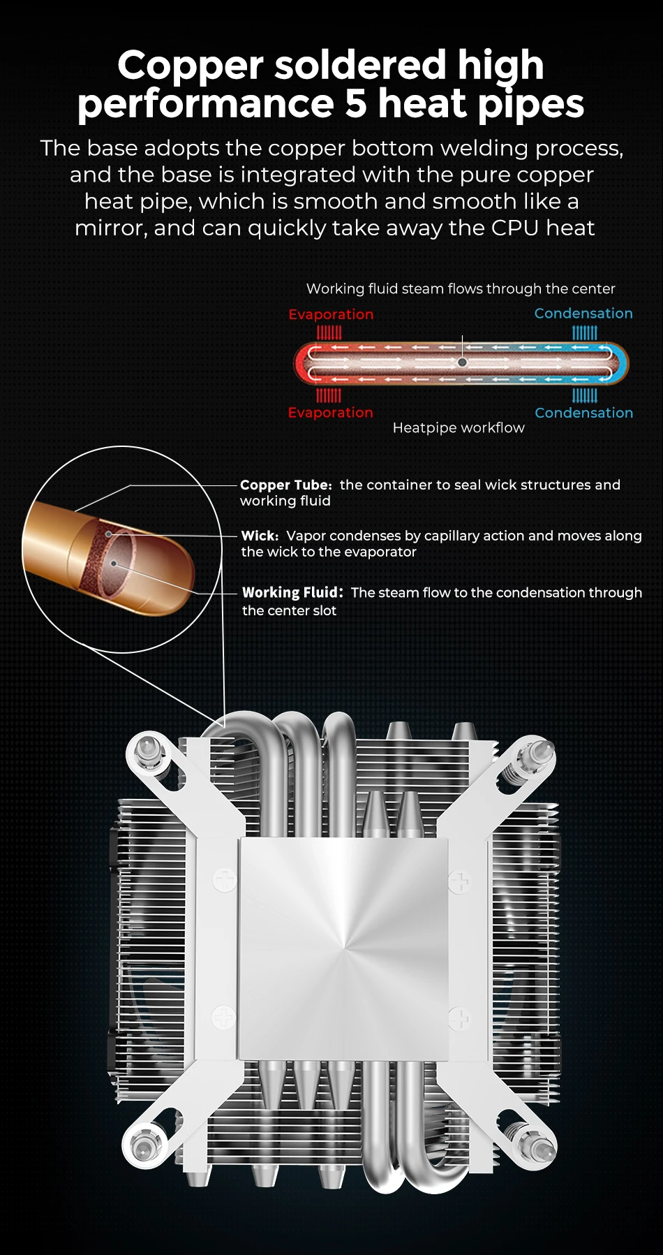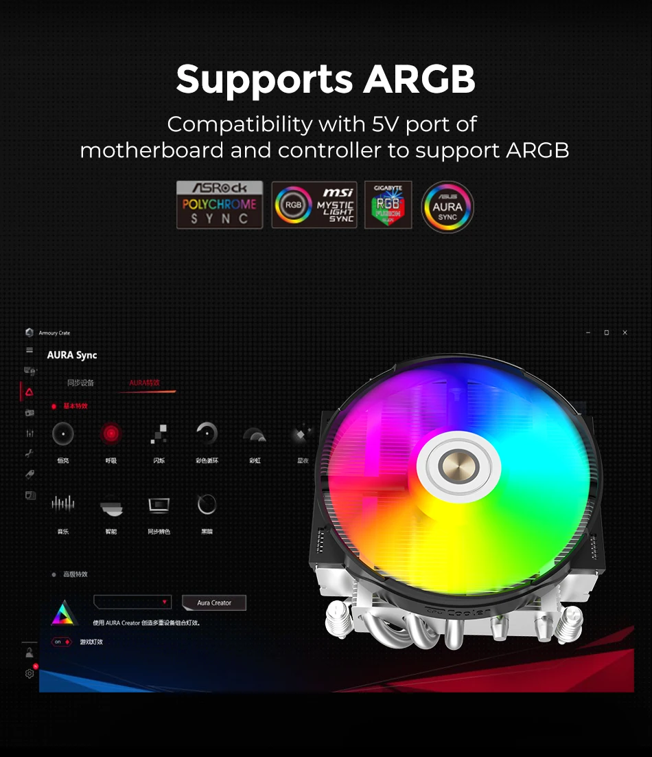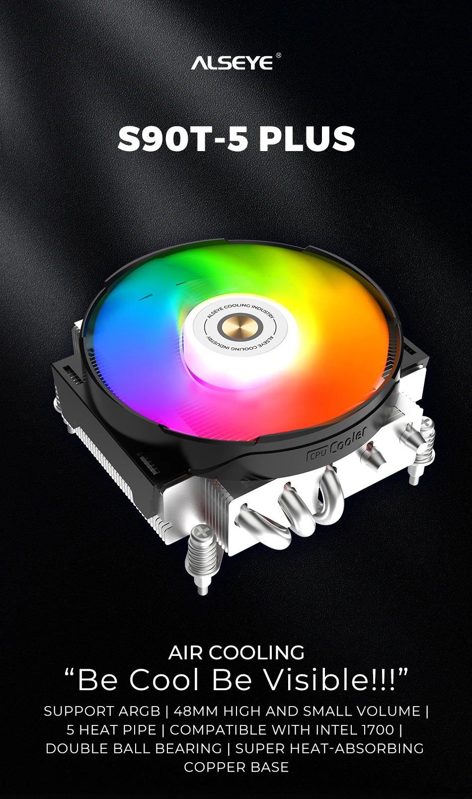 Comprar ALSEYE-enfriador de CPU S90T-5 Plus, ventilador Argb de 5V y 3 pines, sincronización AURA, 5 tubos de calor, Base de cobre, compatible con enchufe Intel lga1700/1200/1366/115X