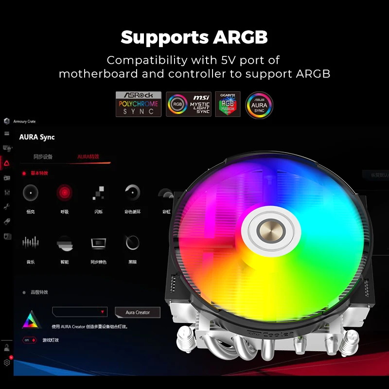 Comprar ALSEYE-enfriador de CPU S90T-5 Plus, ventilador Argb de 5V y 3 pines, sincronización AURA, 5 tubos de calor, Base de cobre, compatible con enchufe Intel lga1700/1200/1366/115X