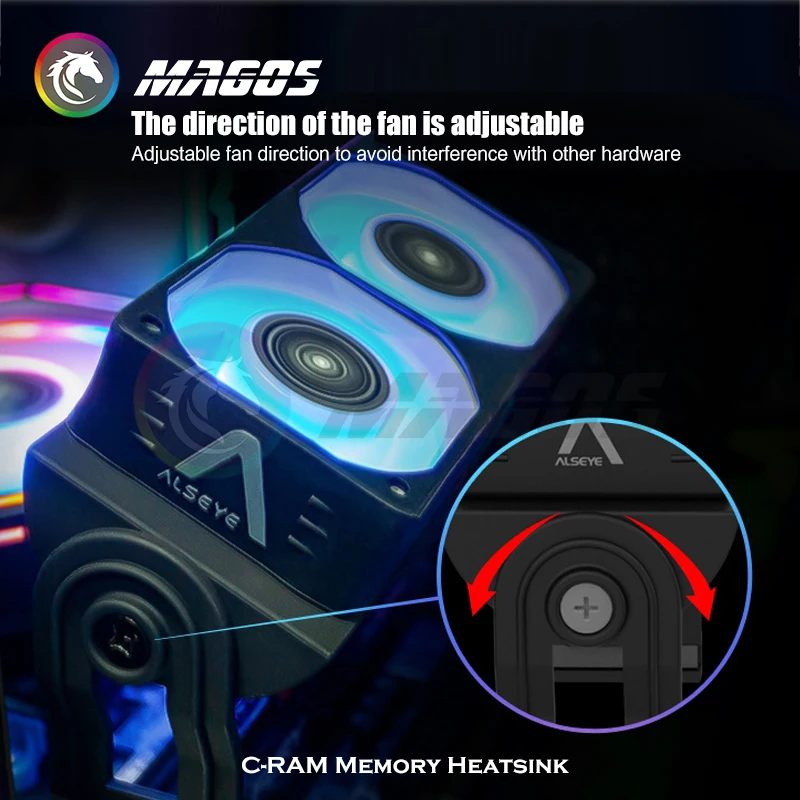 ALSEYE-Radiador de refrigeración RAM con ventilador Dual de 60mm, compatible con DDR/DDR2/DDR3/DDR4/DDR5, Enfriador de memoria, control de temperatura de 1200-2000RPM