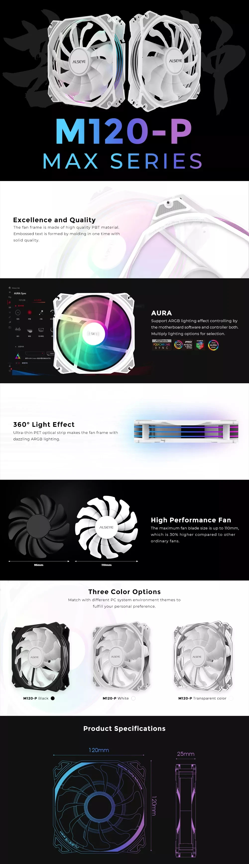 Comprar ALSEYE-ventilador de 120mm ARGB PC, ventilador de refrigeración PWM, 11 aspas, diseño único con agujero de tornillo, efecto de iluminación, 5V, 3 pines/4 pines, para funda de PC