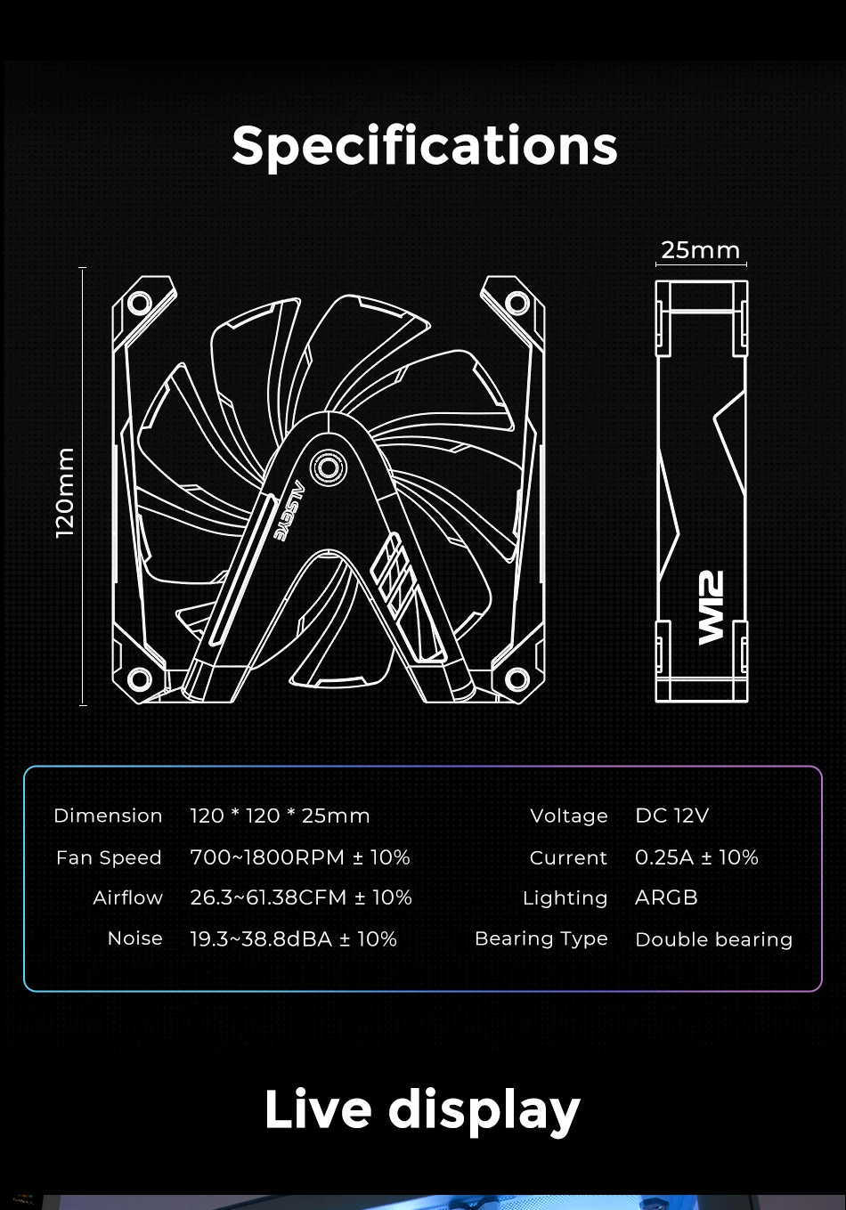 Comprar ALSEYE-ventilador de caja de W12-pro PC, dispositivo de refrigeración de Material de aleación de aluminio, doble rodamiento de bolas, PWM, 5V, 3 pines, ARGB, cc 12V, 120 H, 50000mm