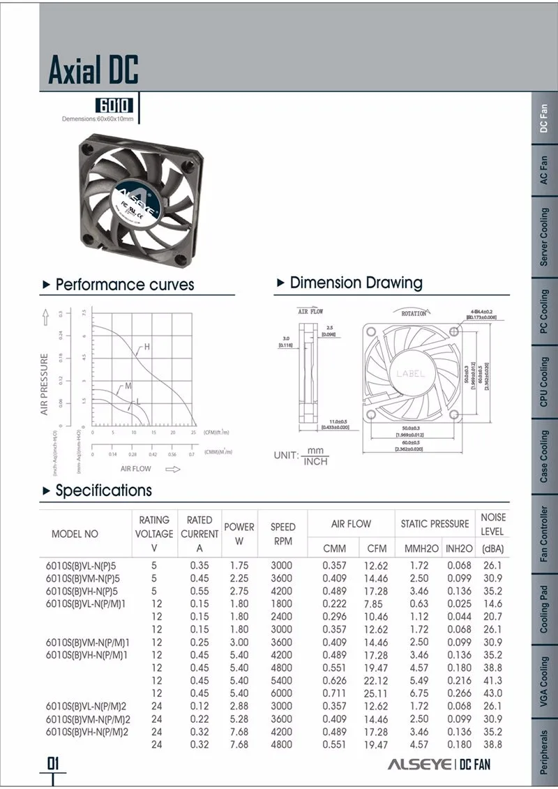 Comprar ALSEYE-ventilador de refrigeración 6010 DC, radiador para mantenimiento eléctrico, 12v, 2400RPM, 60mm, ventilador con cubierta
