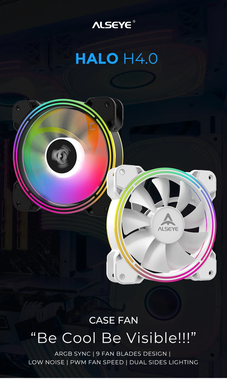 Comprar ALSEYE-ventilador de refrigeración H4.0 para PC, dispositivo de 120mm, 4 pines, PWM A Hub, 9 LED estáticos, ARGB, para refrigeración de carcasas