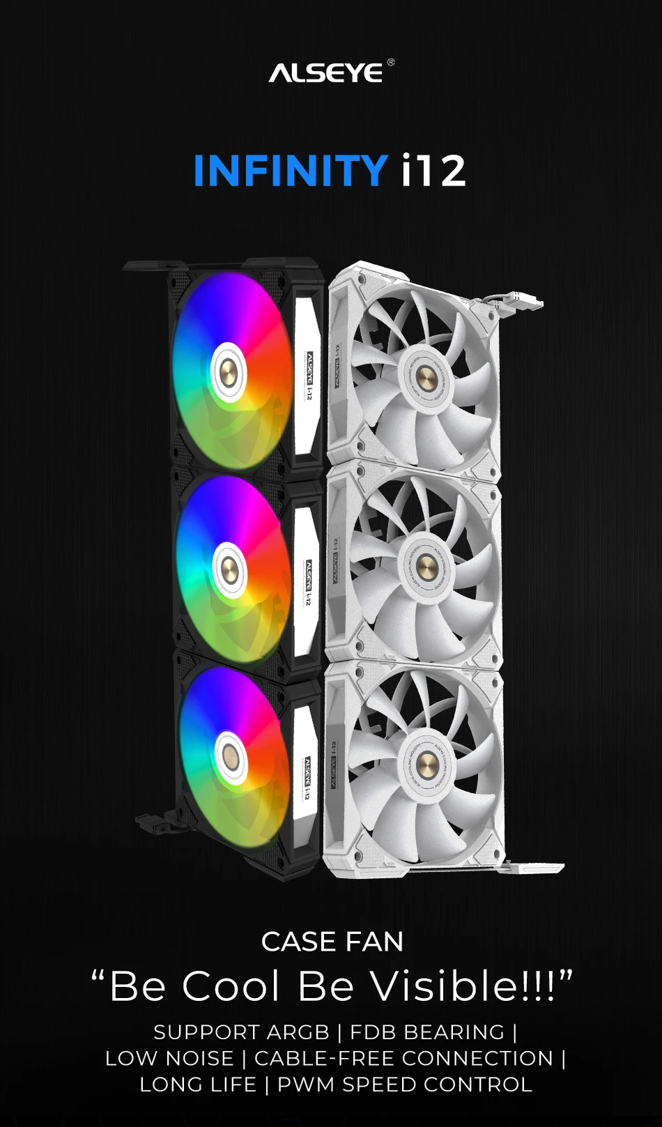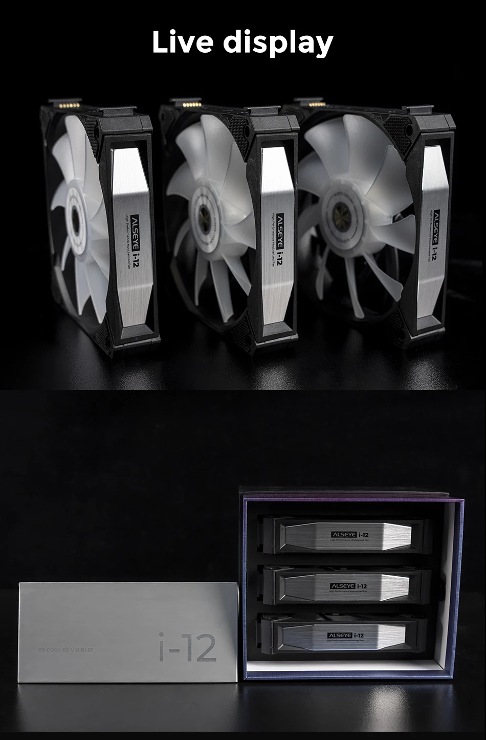ALSEYE-ventilador de refrigeración i12 para PC, bloque de cojinete FDB, ajuste a presión, 5V, 3 pines, luz Led, PWM, ARGB, ventilador para funda de PC, 120mm