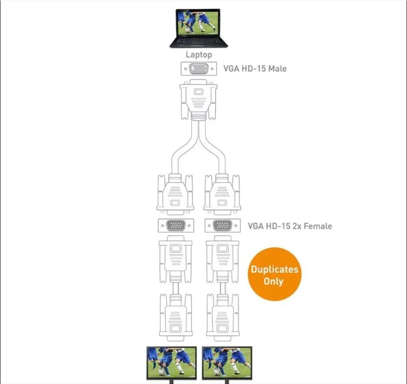 El cable en Y de vídeo VGA macho a hembra de primera calidad admite una sola señal VGA a dos monitores.