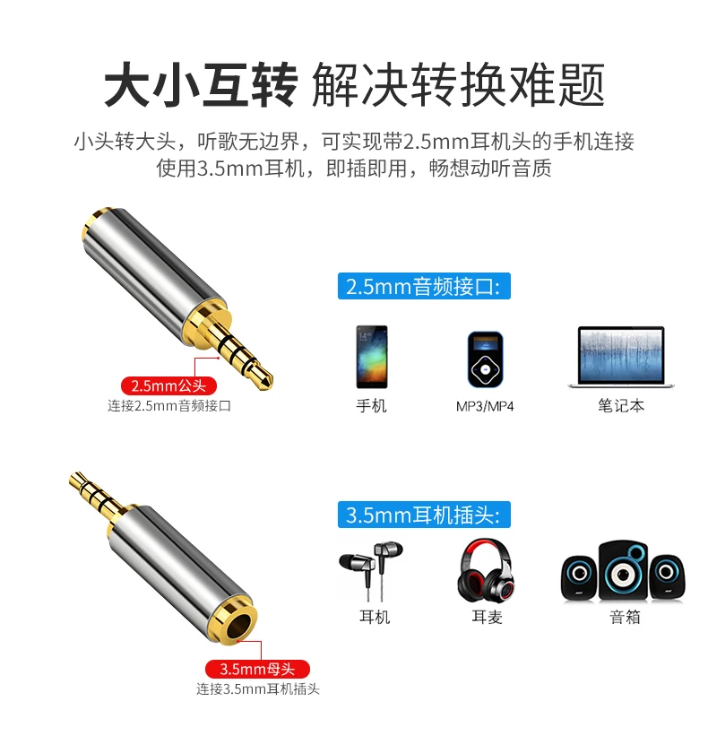 Conector convertidor de auriculares para teléfono móvil, convertidor de audio de 2,5 mm a 3,5 mm