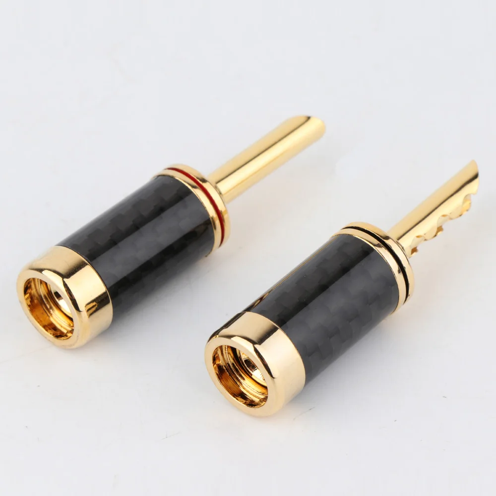 Conector banana chapado en oro Hifi BFA de alta calidad, 8 Uds., cable de altavoz de audio de fibra de carbono, conector banana