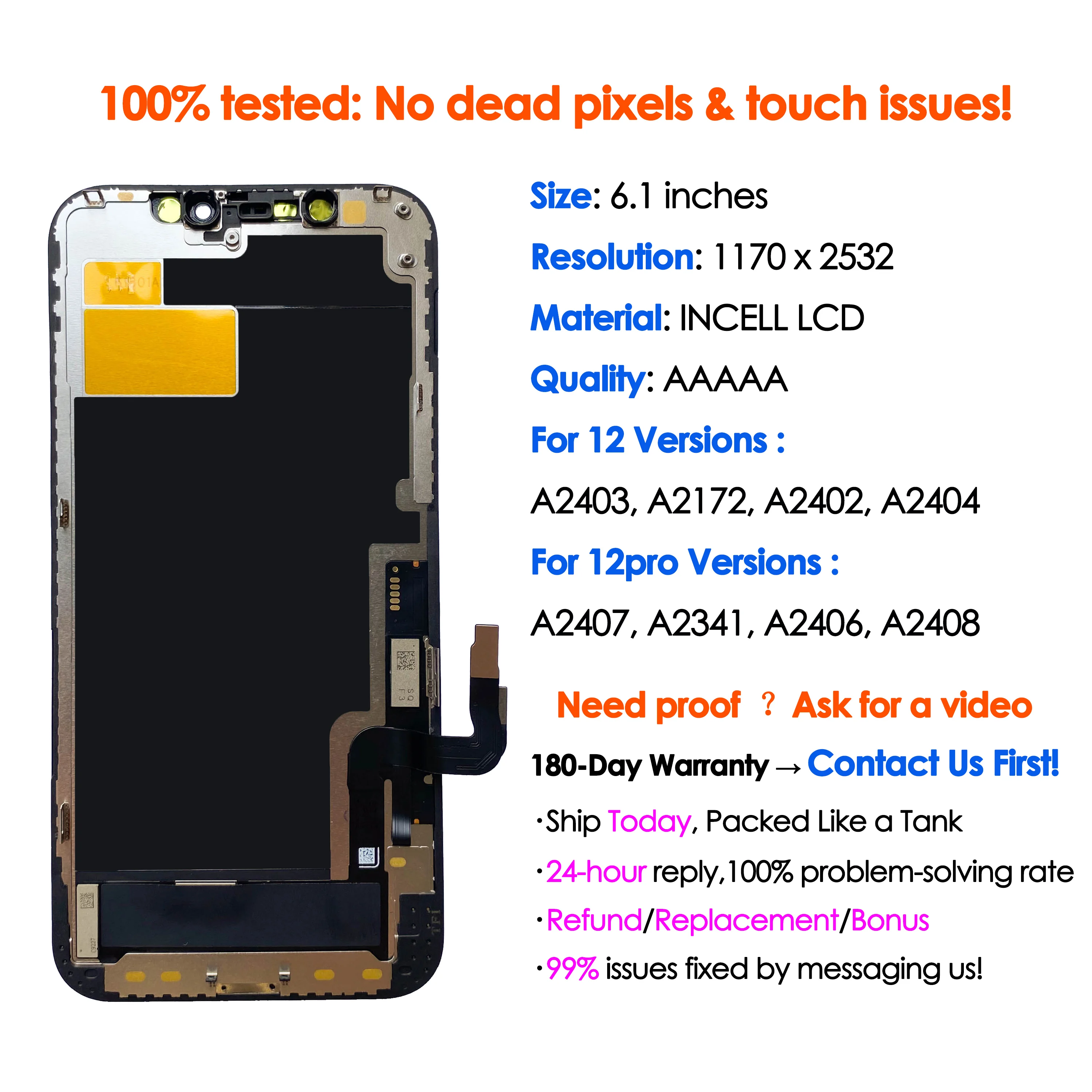 Comprar Alta calidad AAA incell LCD para iPhone 12 Pro pantalla táctil 12Pro reemplazo de la pantalla digitalizador montaje reparación Kit al por mayor