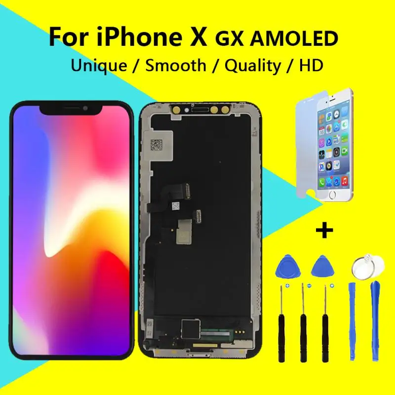 Comprar Alta calidad para iPhone X GX LCD AMOLED sin pantalla de píxeles muertos para iPhone X XS GX Pantalla AMOLED reemplazo con táctil 3D