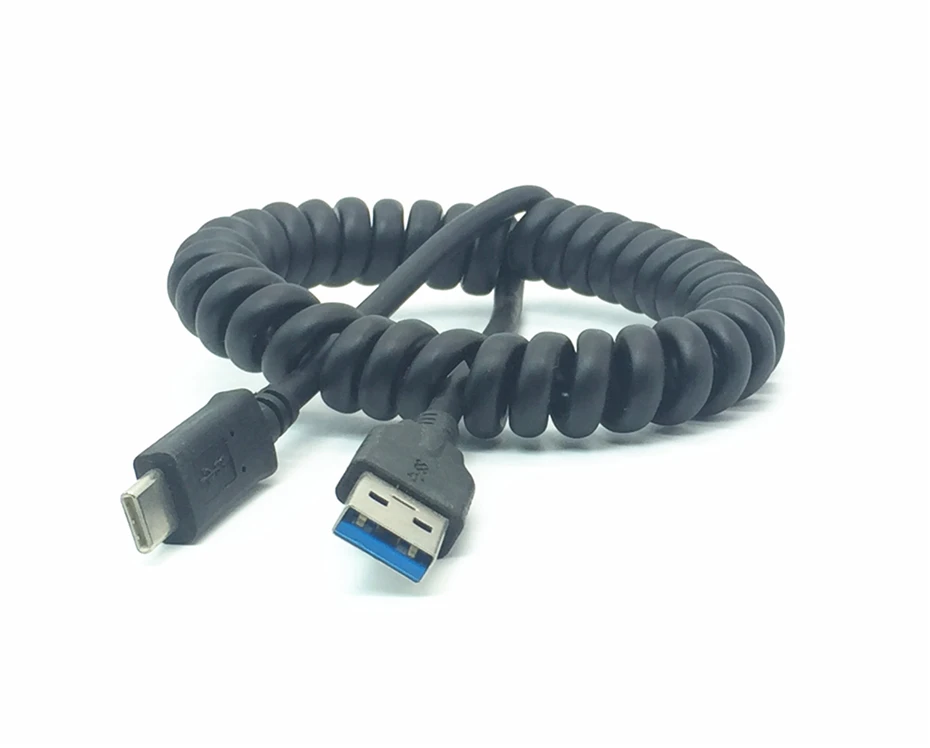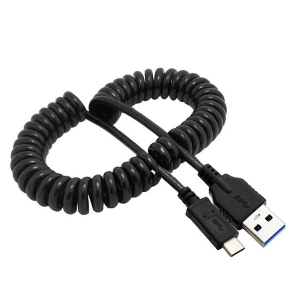 Alta calidad negro 1,5 M USB3.1 tipo C resorte línea retráctil alta velocidad USB tipo C macho a macho USB 3,0 cable de transferencia de fecha
