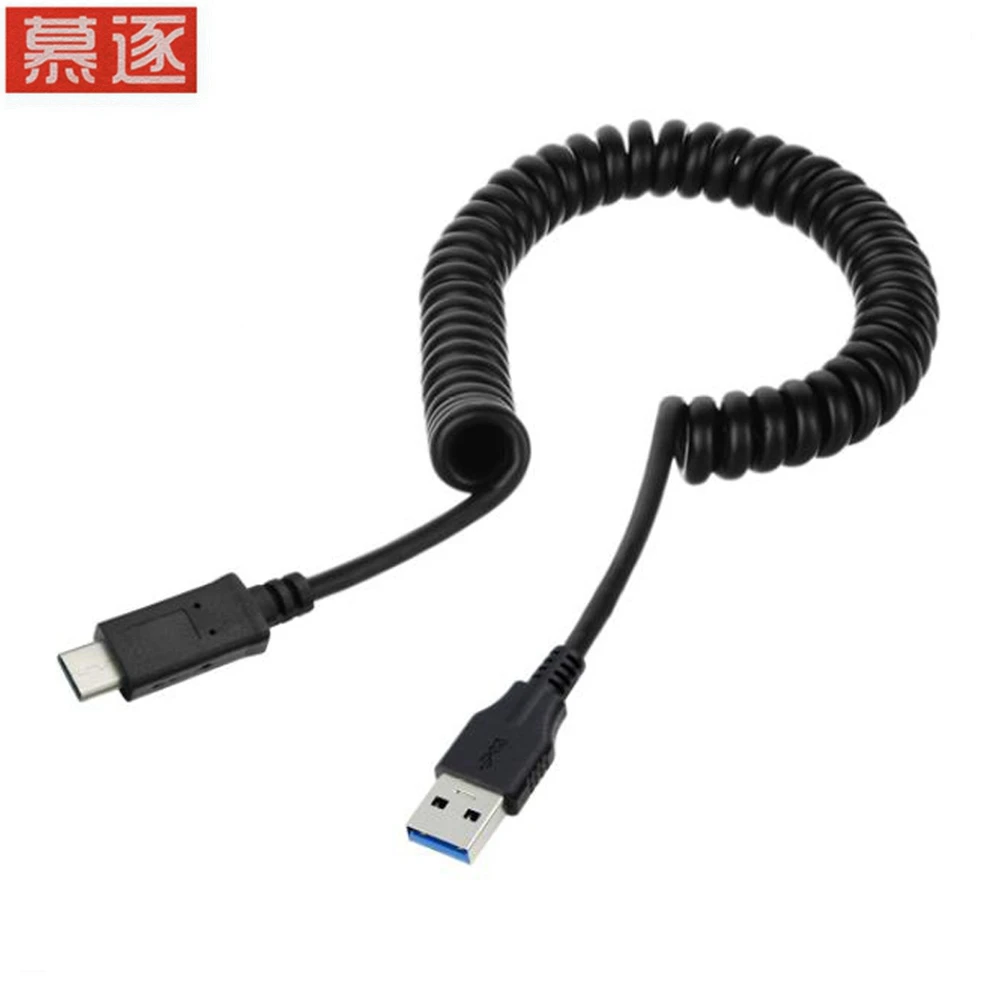 Alta calidad negro 1,5 M USB3.1 tipo C resorte línea retráctil alta velocidad USB tipo C macho a macho USB 3,0 cable de transferencia de fecha