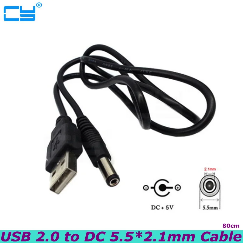 Comprar Alta calidad USB 2,0 tipo A macho a CC 5,5x2,1mm conector de barril de enchufe de alimentación CC Cable de 5V para ventilador eléctrico pequeño Audio 80cm
