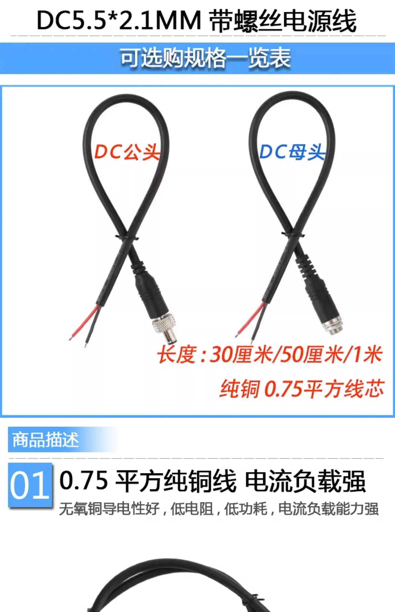 Alta potencia con pestillo de bloqueo DC5.5 * 2,1 m línea de alimentación evita que los tornillos se caen de la cabeza macho hembra-macho de CC cable de conexión