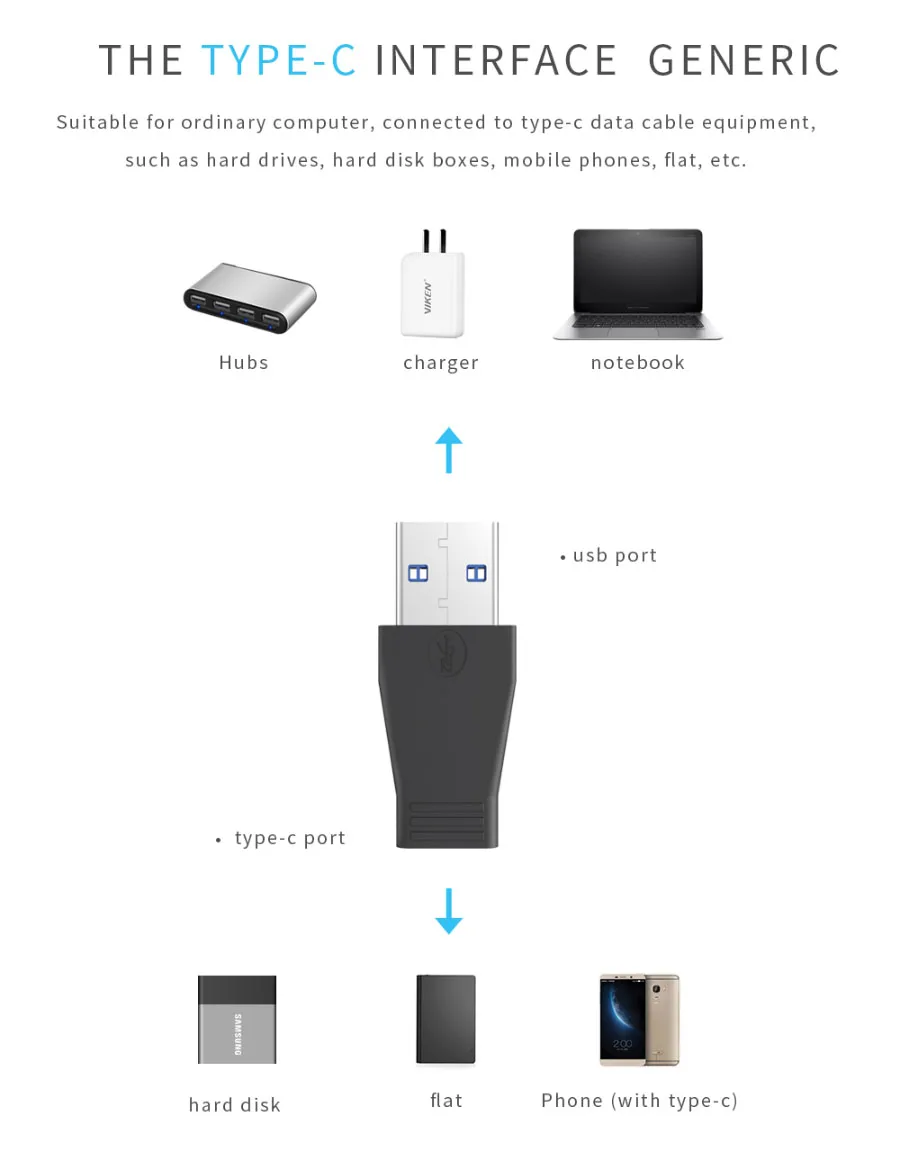 Comprar De alta velocidad USB 3,1 C-Tipo de frau zu USB 3,0 romantik adaptador de puerto usb-c zu USB 3,0 A-Tipo de stecker schwarz konverter platz tipo