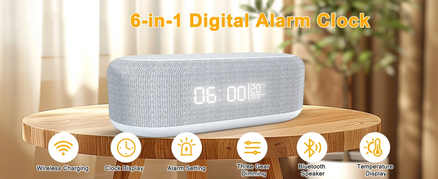 Cargador inalámbrico, despertador, reloj, diseño exclusivo