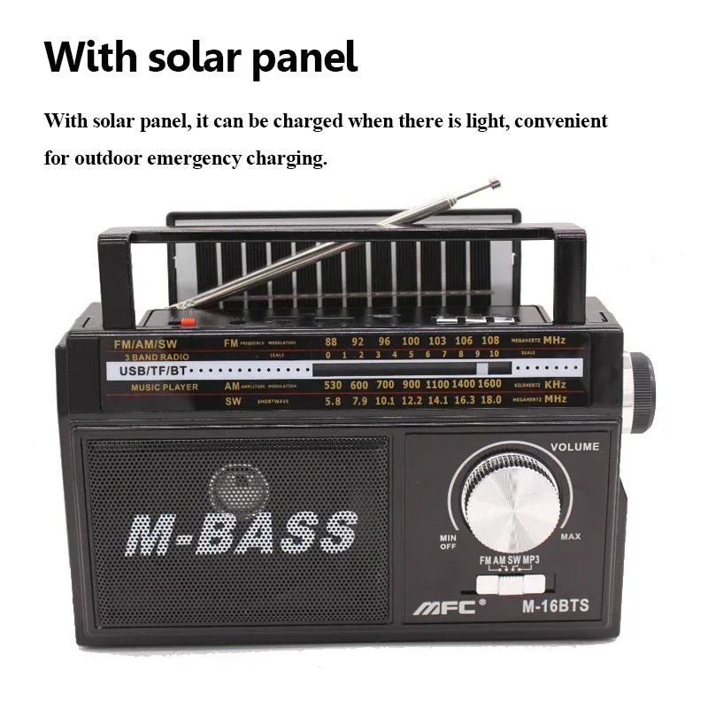 Admite tres bandas FM AM SW, FM88-108MHZ,AM530-1600khz,SW5.8-18.0MHZ, muchas estaciones de radio para elegir.