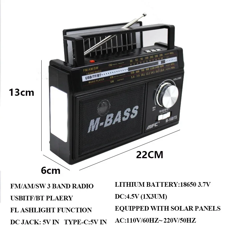 Características del producto: reproducción de Bluetooth, reproducción de inserción de tarjetas, reproducción USB, linterna, carga solar