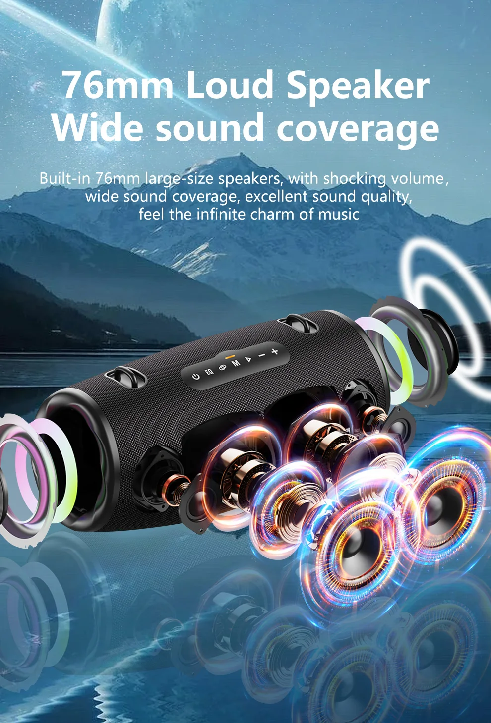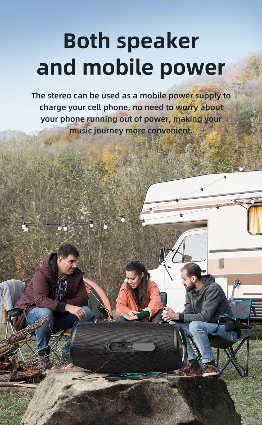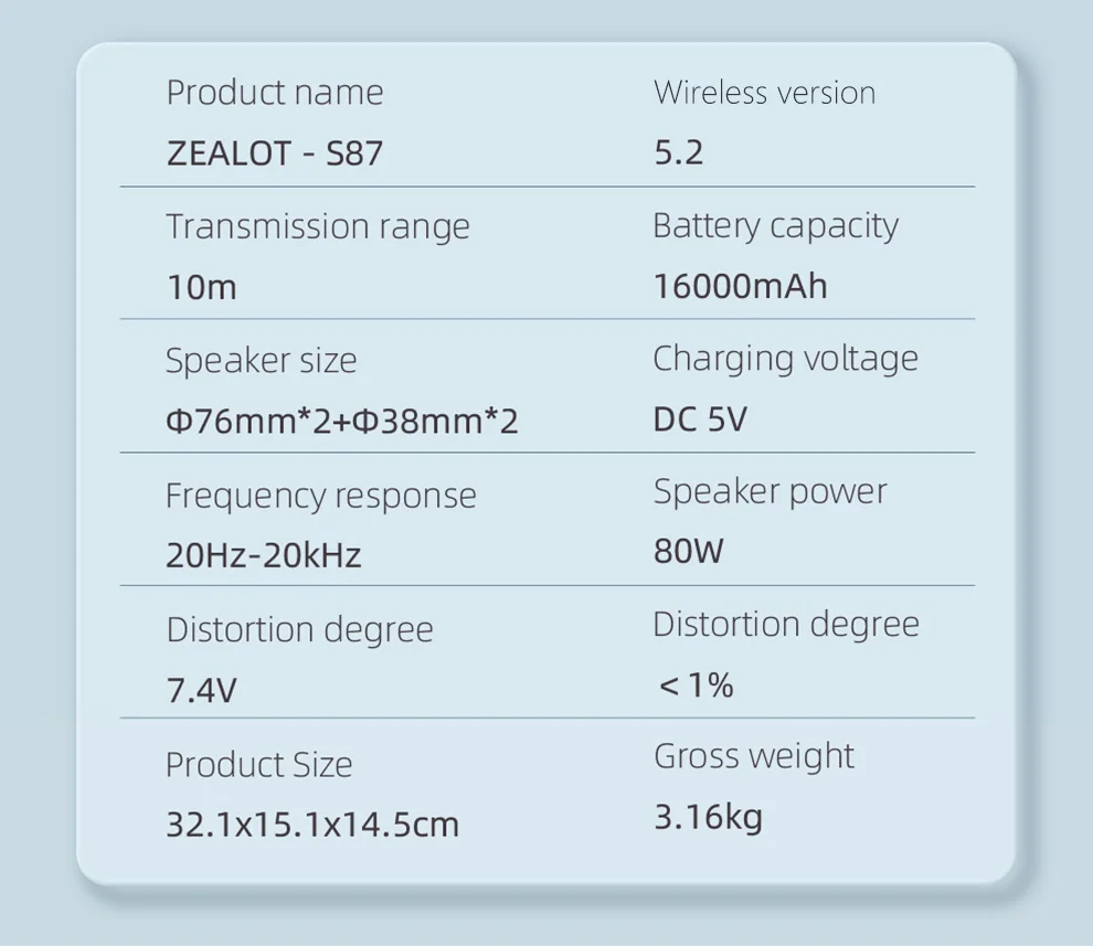 El altavoz es genial, especialmente el bajo, bien hecho y empaquetado, el empaque no está dañado. El conjunto incluye una correa, un cable de carga y un cable auxiliar.