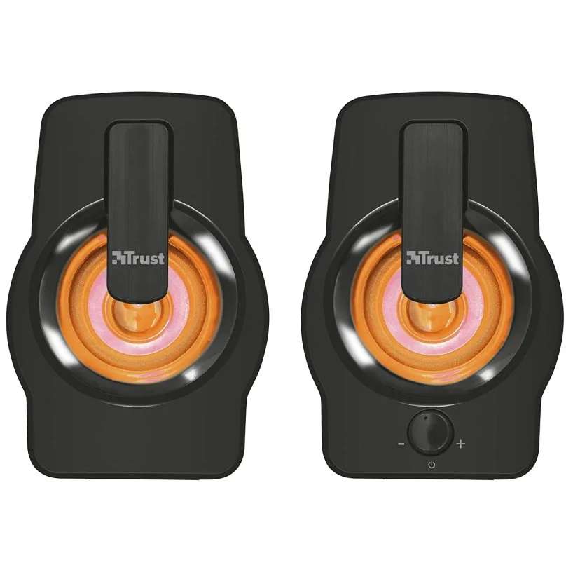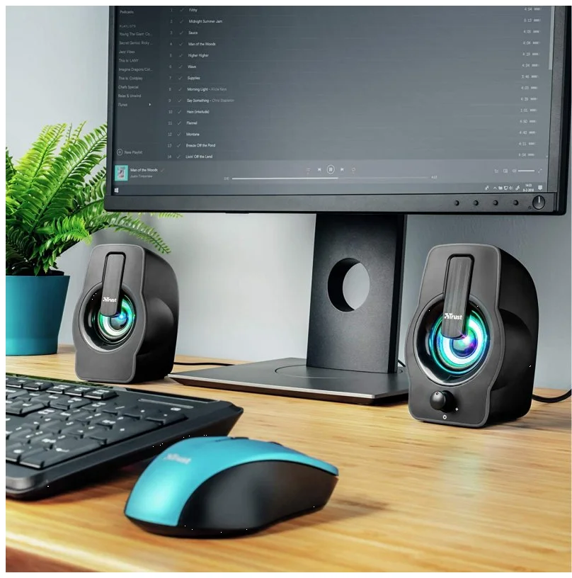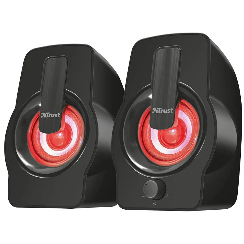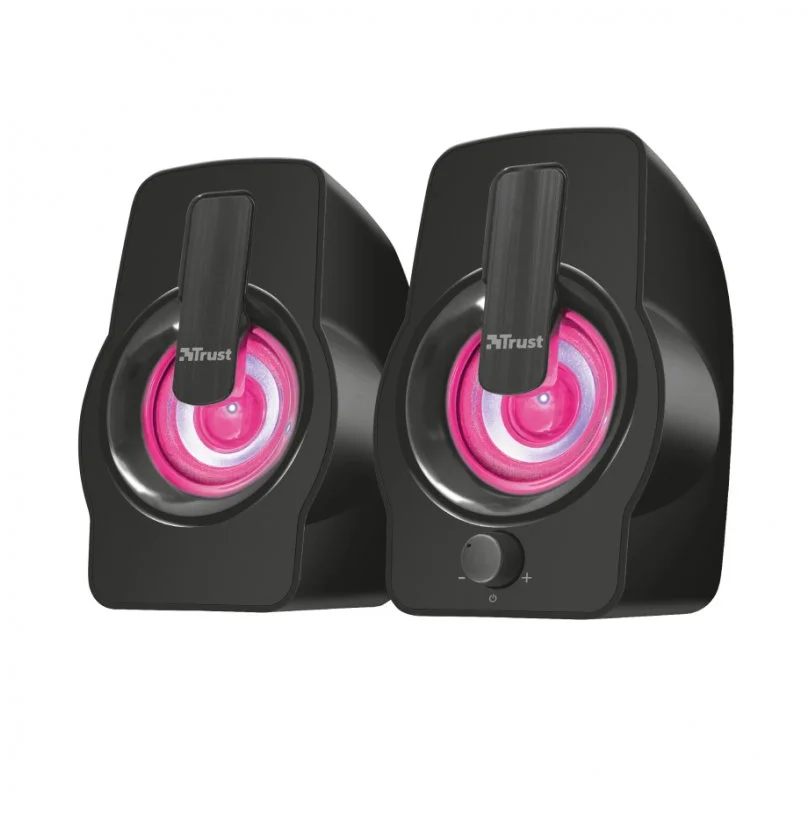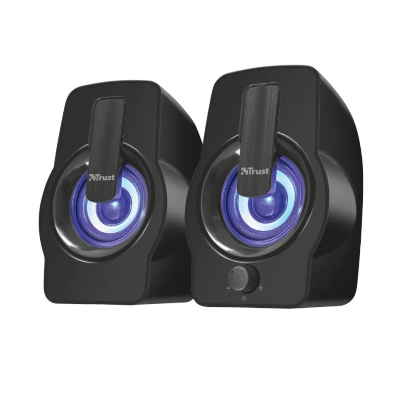 El juego de altavoces Trust Gemi iluminados con LED RGB 2.0, es un conjunto de altavoces compacto y elegante para complementar los equipos domésticos o de oficina. Con una potencia máxima de 12 W (6 W RMS) disfrutarás de las películas, los sonidos de los juegos y tu música favorita desde el ordenador o el portátil. Garantiza un sonido claro y ocupa poco espacio en el escritorio.
