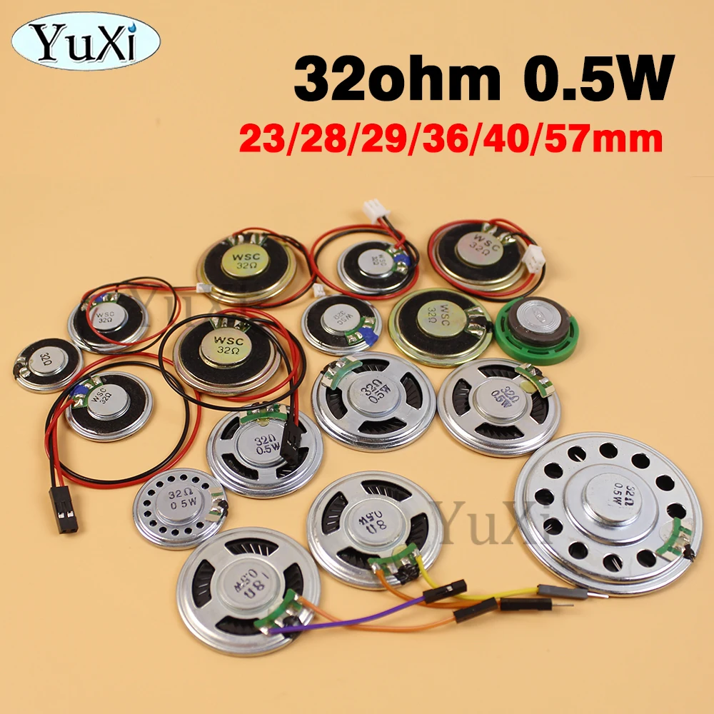Comprar Altavoz de 32 Ohm, 0,5 W, 0,5 W, 32R, diámetro 23MM, 28MM, 36MM, 40MM, 57MM, cable XH 2,54, Terminal Dupont Line, 1 unidad