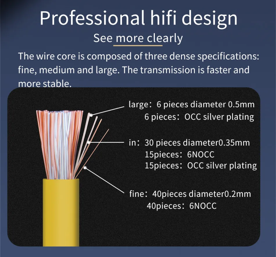 - 1/5m 6N OCC Hifi Speaker Cable DIY Loud Amplifier Audio AUX Cord (Choose more quantity, more cheaper)