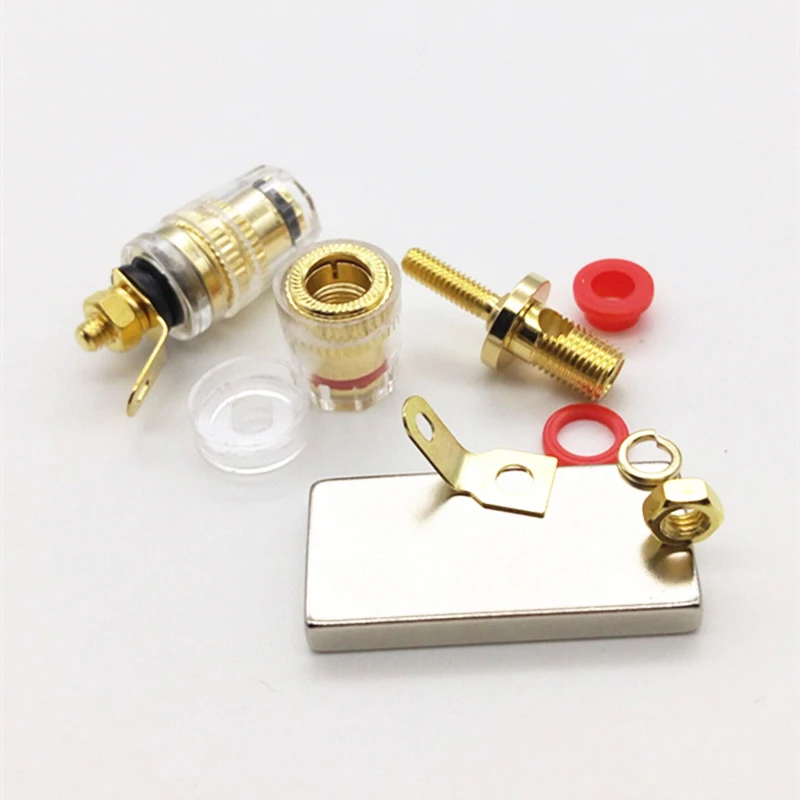 Comprar Altavoz amplificador chapado en oro y cobre, conector transparente rojo/Negro, 4mm, conector Banana 520, 50 Uds.