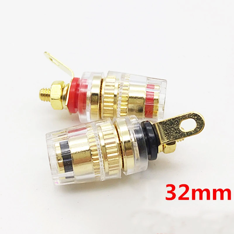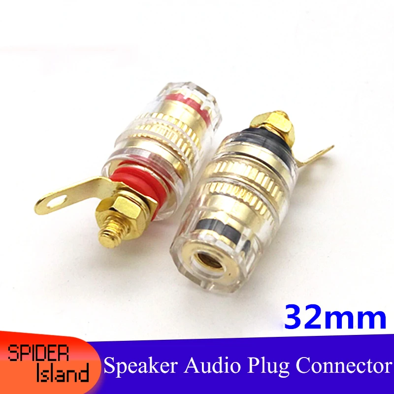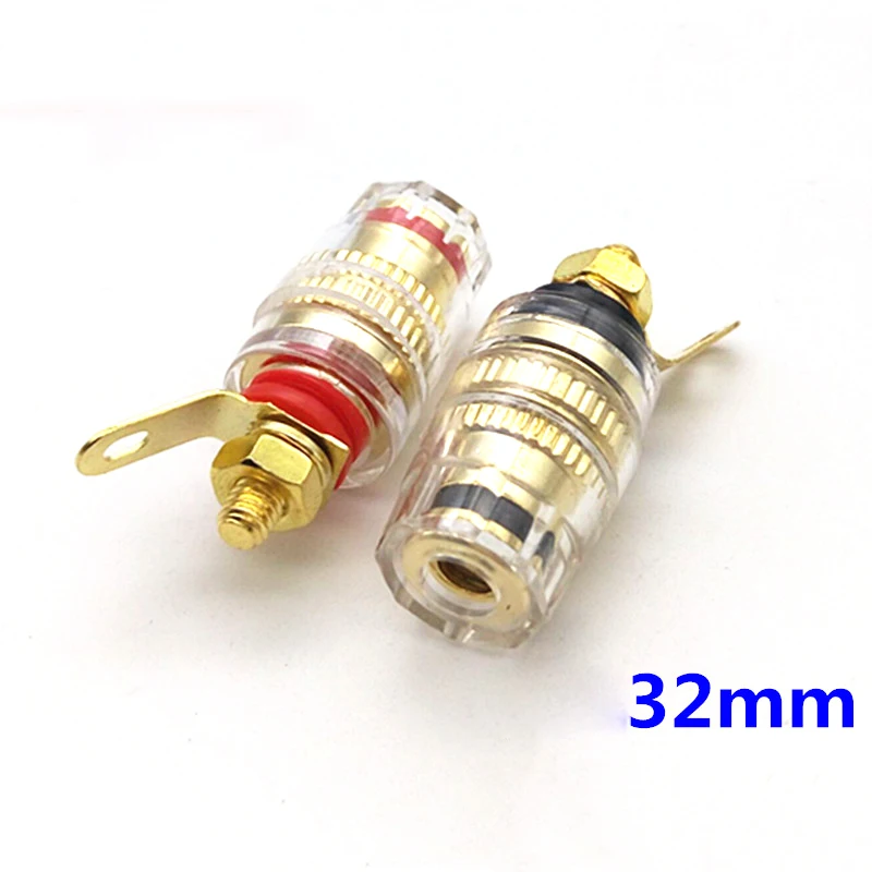 Conector de cristal de alta gama, con carcasa de cristal, cola larga, resistencia a la oxidación, baja distorsión, alta calidad, la parte principal es de cobre, la superficie es de oro real, dedicado para entusiastas del bricolaje, utilizado principalmente para terminal de chasis de amplificador de potencia y terminal de altavoz.