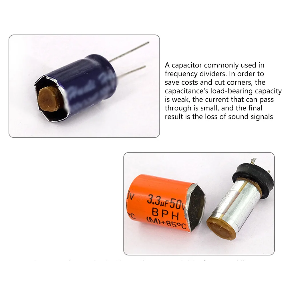 Características: 1. Hecho de materiales de alta calidad, duraderos y prácticos 2. Adopta condensadores dedicados de audio de alta calidad para una mejor calidad de sonido 3. Inductor de graves + imán de polímero para mejorar el hundimiento de los graves 4. Rendimiento estable, instalación simple y conveniente 5. Amplia gama de aplicaciones, adecuada para altavoces de hasta 8 pulgadas y 80W.