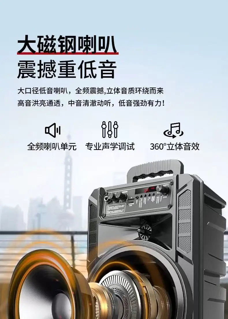 Altavoz Bluetooth de 300W, Subwoofer de 6,5 pulgadas, altavoz de Karaoke, Pilar para exteriores, altavoz de baile cuadrado multifuncional móvil, TF, AUX, USB
