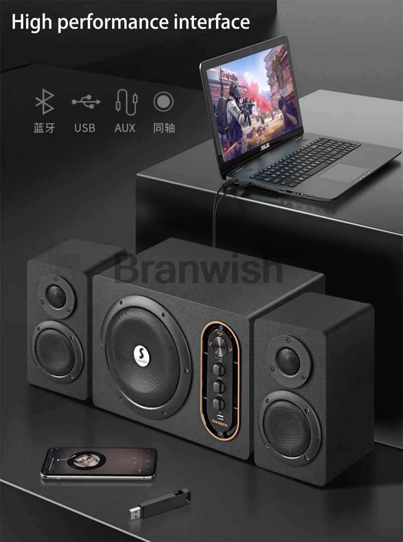 Comprar Altavoz Bluetooth de alta potencia para cine en casa, Subwoofer 6,5 de 150 pulgadas, 2,1 W, amplificador de caja de sonido, sistema de sonido para Pc