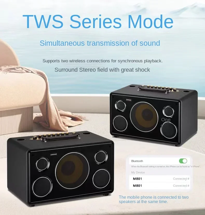 Equipado con módulo Bluetooth 5,0, la conexión del teléfono móvil/ordenador es más fluida, la transmisión estable a una distancia de 10 metros tiene un menor consumo de energía y una fuerte capacidad antiinterferencia. Es compatible con teléfonos móviles/ordenadores y no es un sistema difícil de elegir.