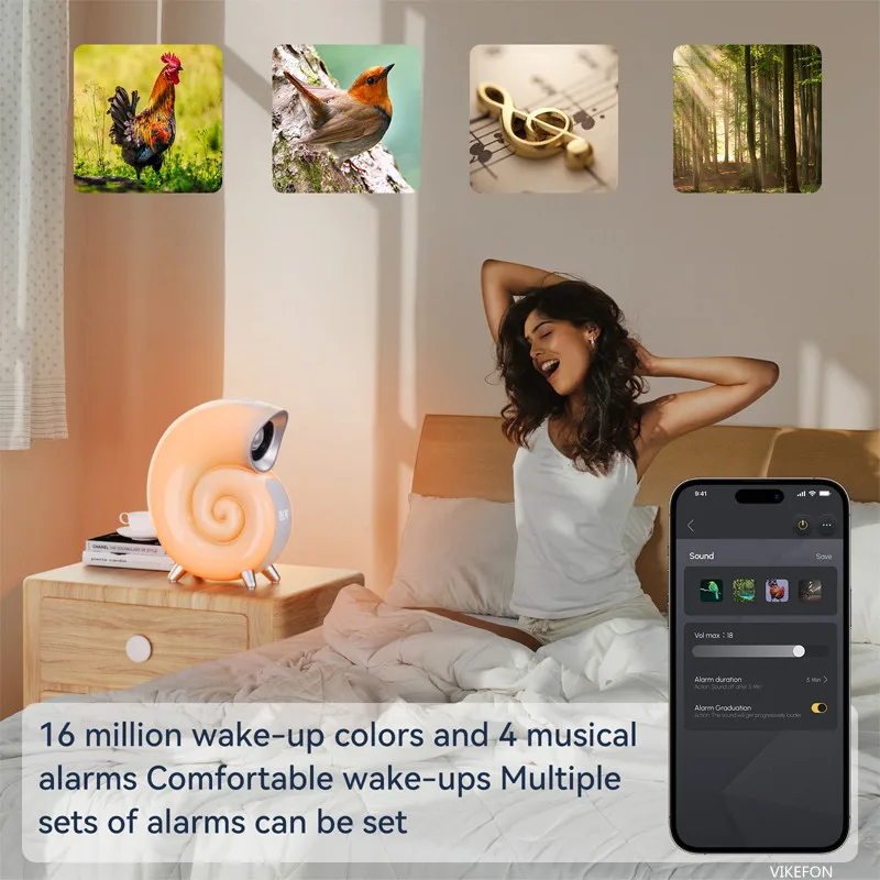 16 millones de colores para despertar y, 4 musicaalarms Cómodo despertar-ups Multiplesets de alarmas se pueden establecer.