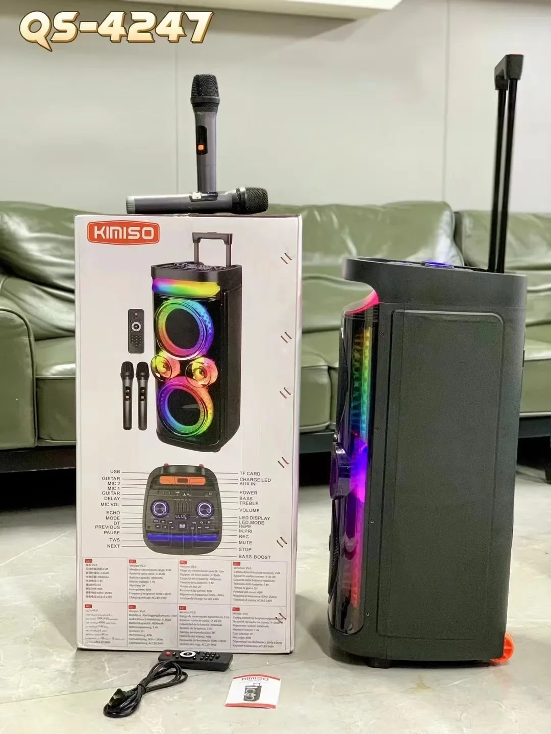 Altavoz Bluetooth para exteriores súper grande de 3000W con potencia máxima, Subwoofer de doble bocina de 8 pulgadas, columna inalámbrica portátil, sonido de graves con micrófono