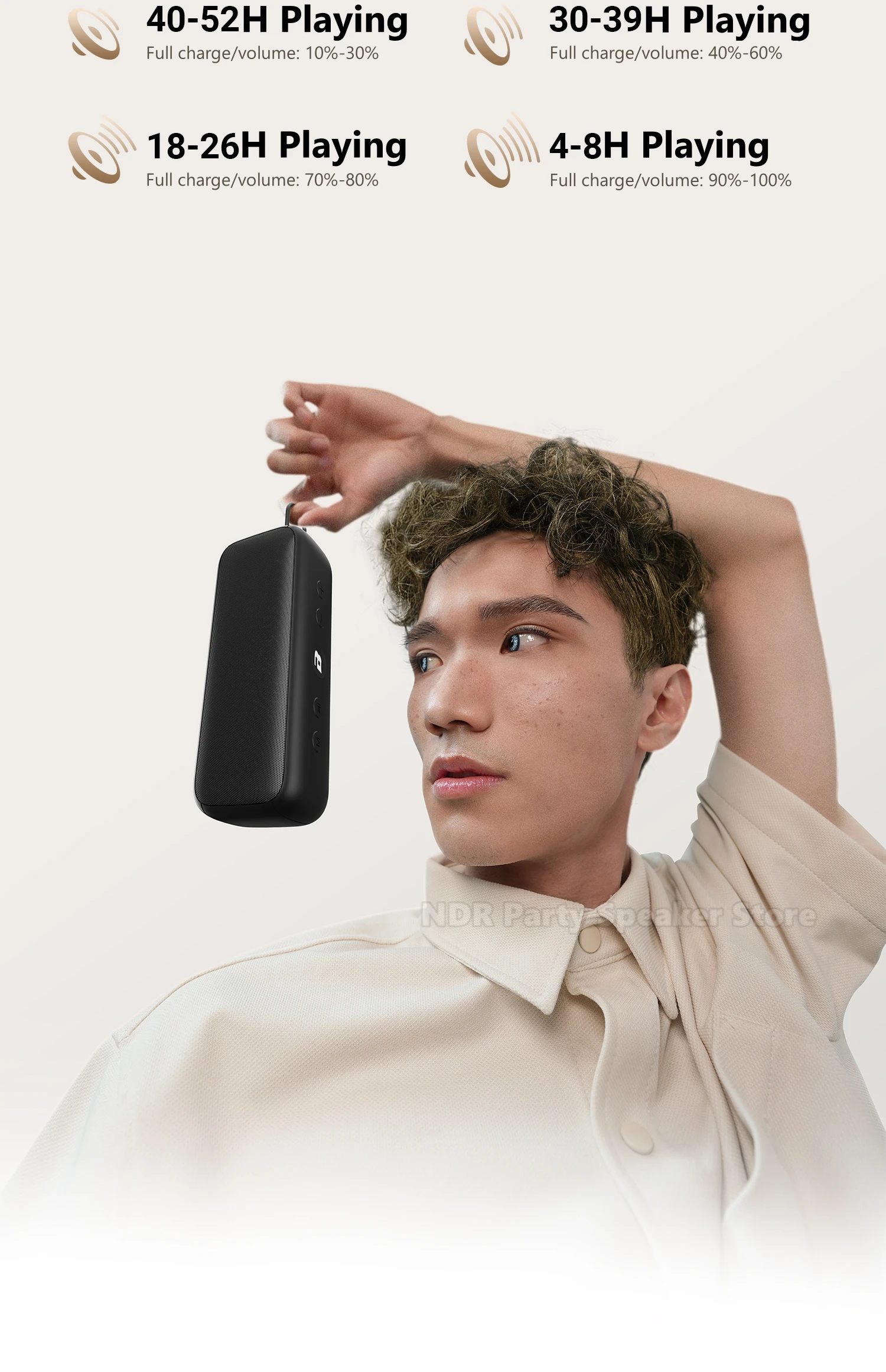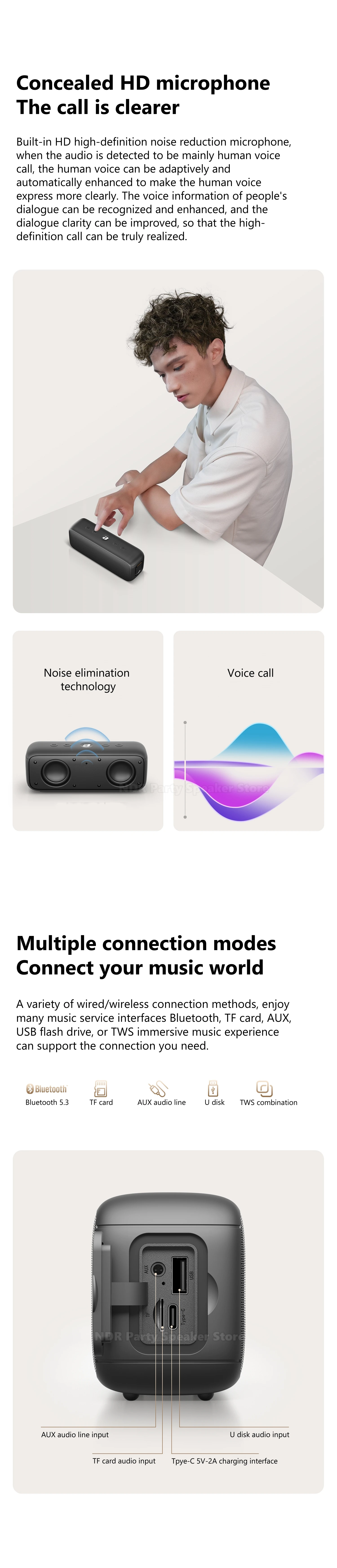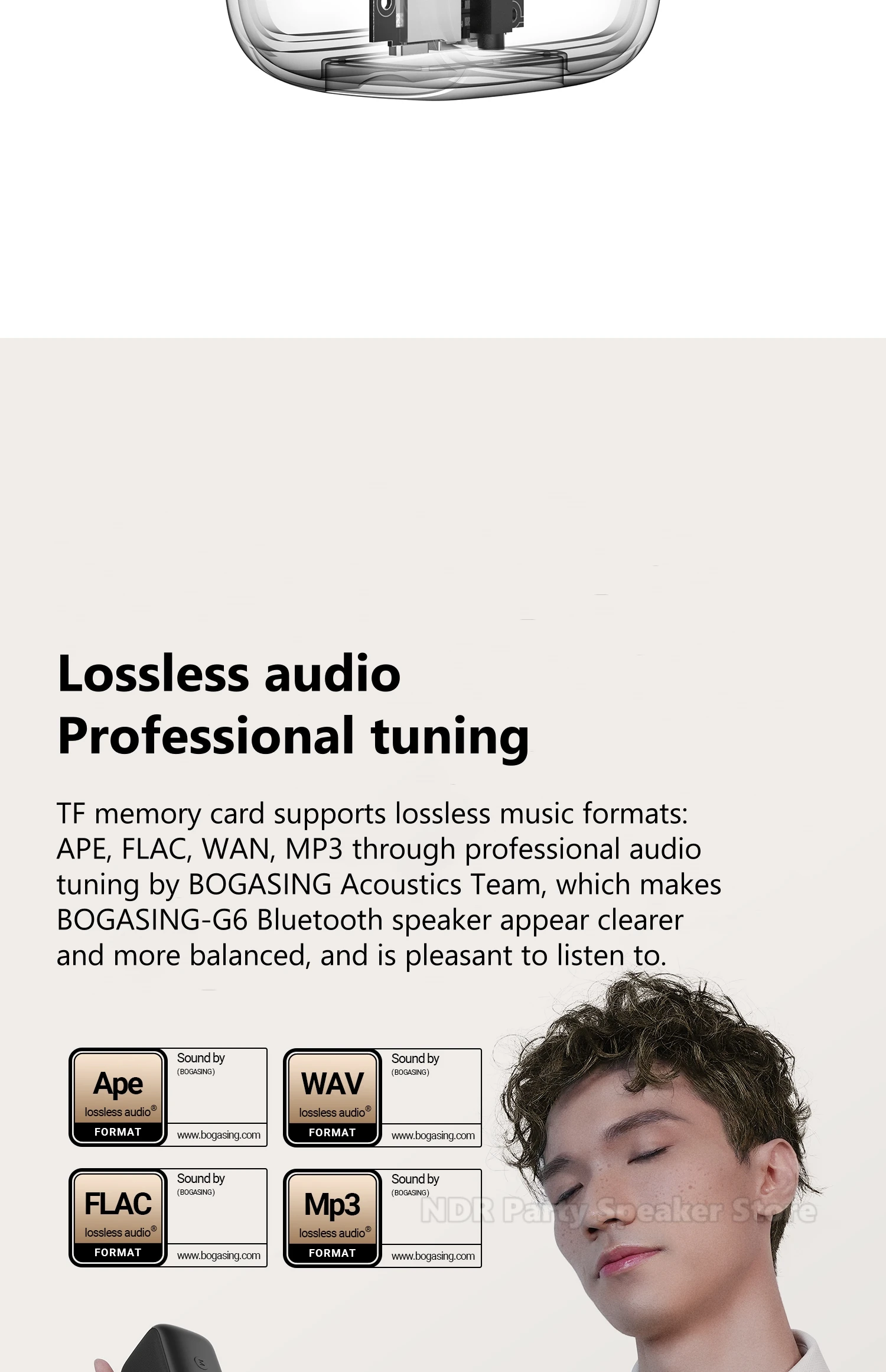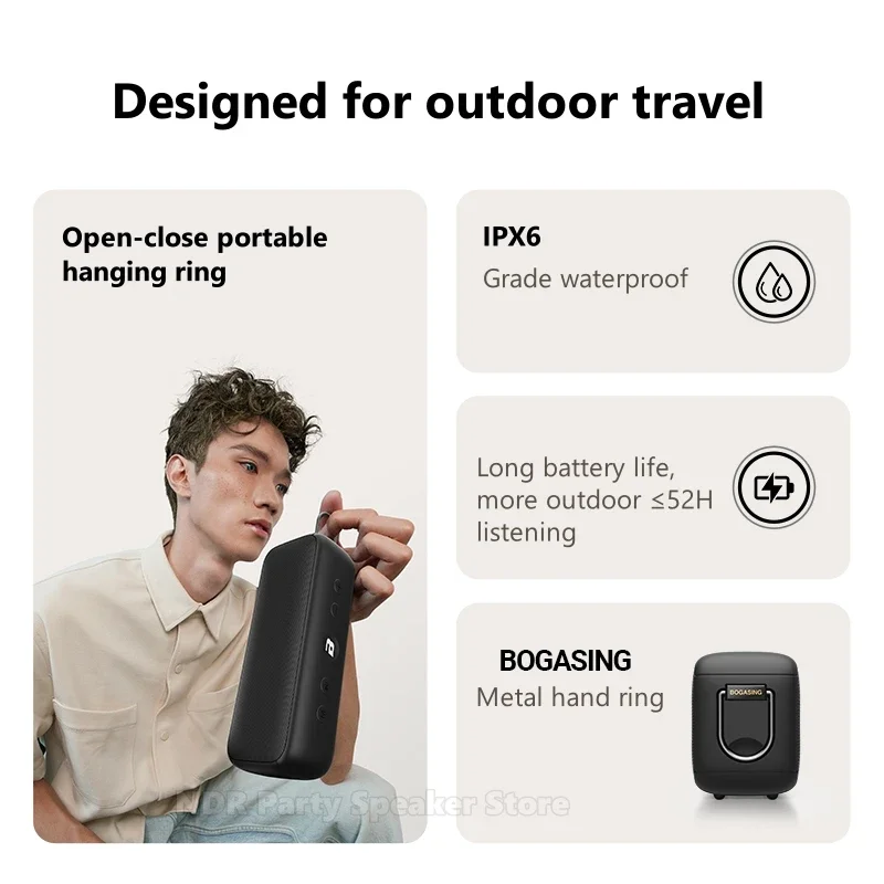 Detalles de la lista: Altavoz G6, cable de carga, cable de audio, manual de instrucciones de 8 idiomas.
