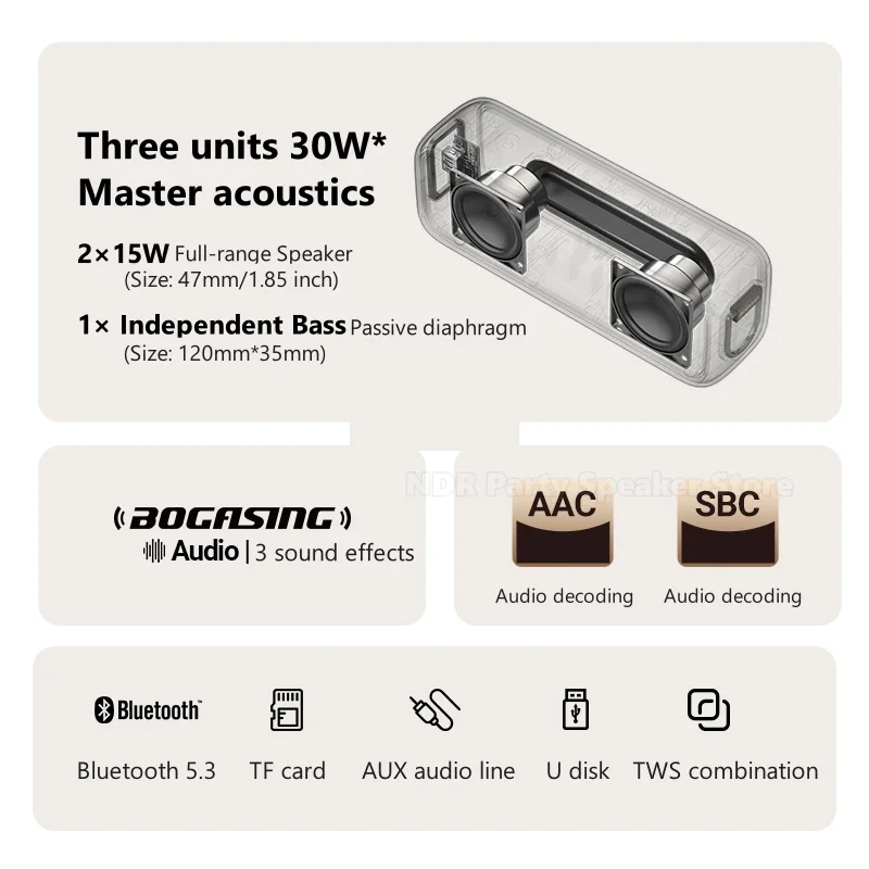 Comprar Altavoz Bluetooth inalámbrico de 30W, sonido envolvente estéreo de alta calidad, portátil, para coche, móvil, hogar, Mini ordenador de escritorio, Subwoofer de Audio