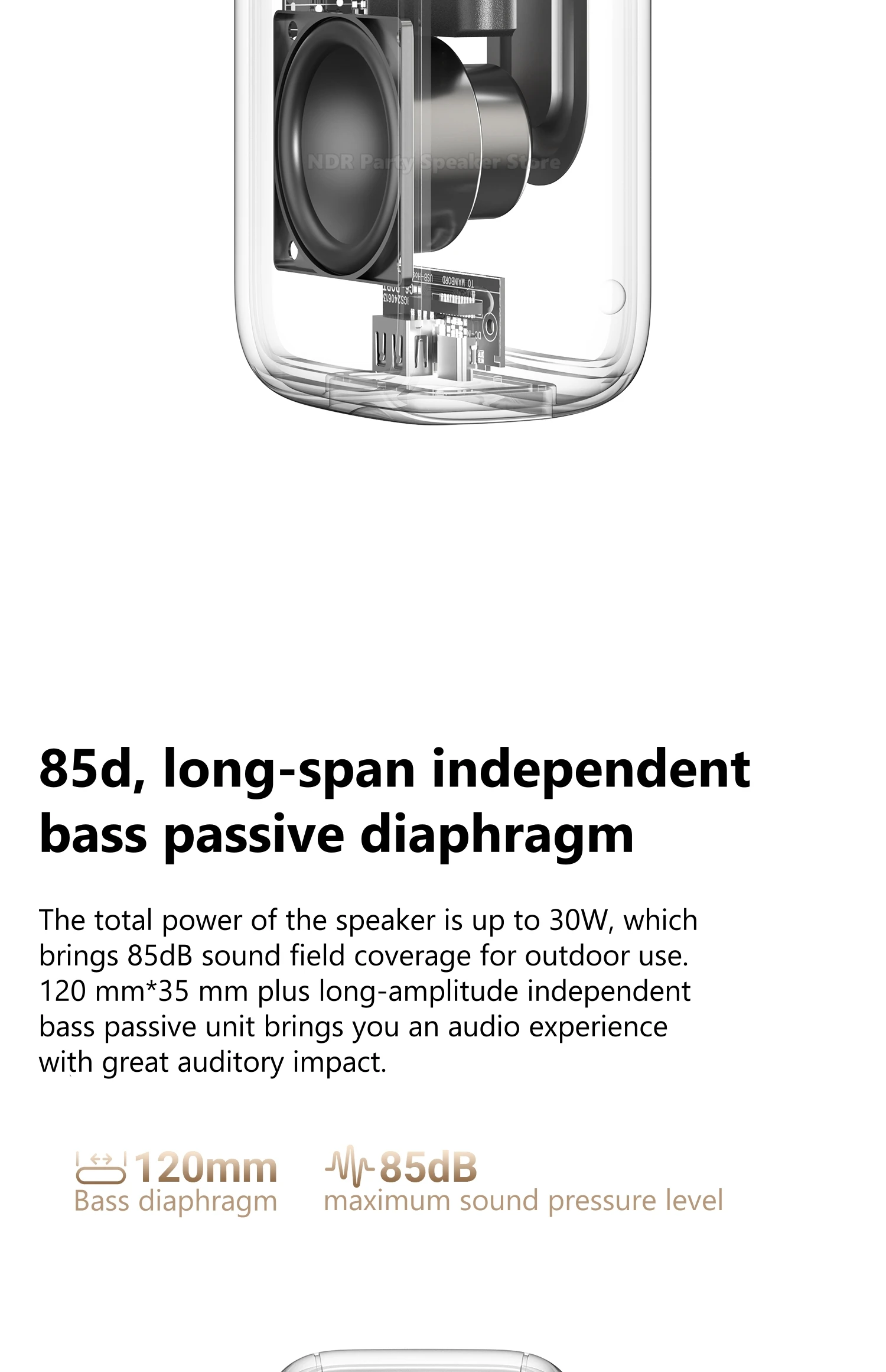Amplificador de potencia: 1 unidad de diafragma pasivo de graves independiente (120 mm*35 mm).