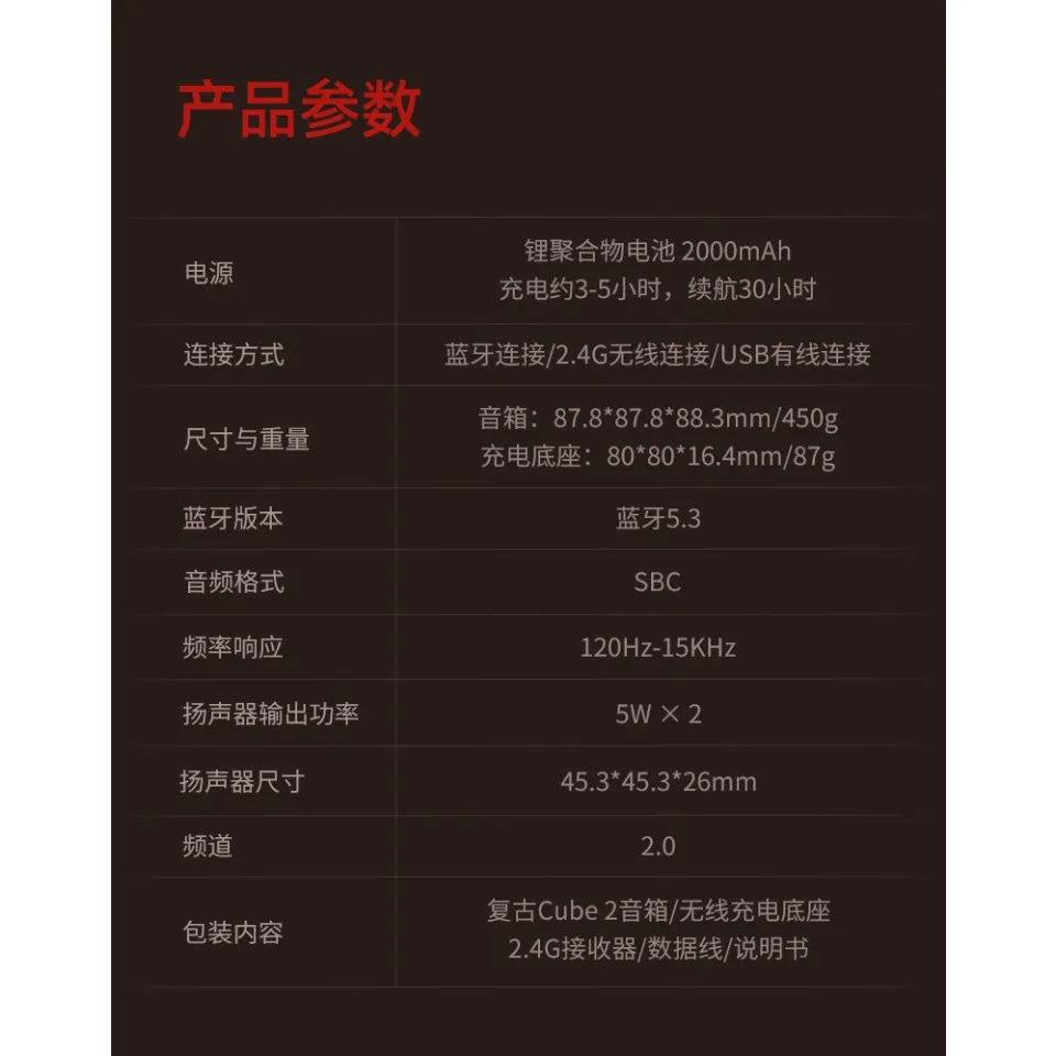 Cube2 Altavoz inalámbrico Bluetooth personalizado Tri-modo Retro Mini altavoces 82dB estéreo ergonómico accesorios de ordenador para juegos regalo
