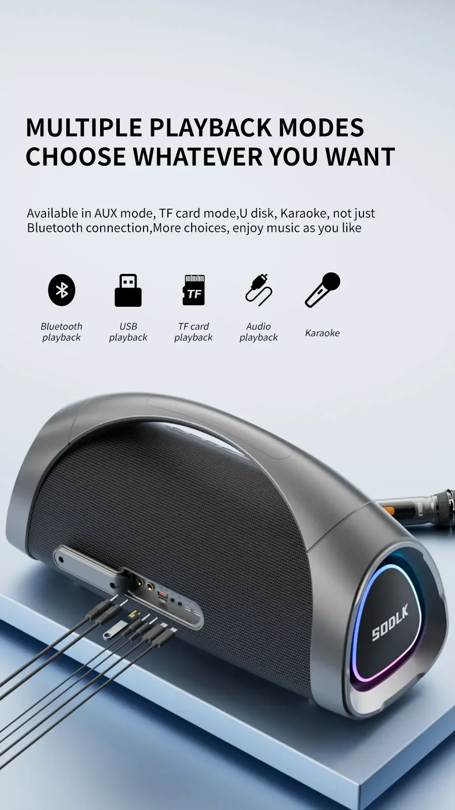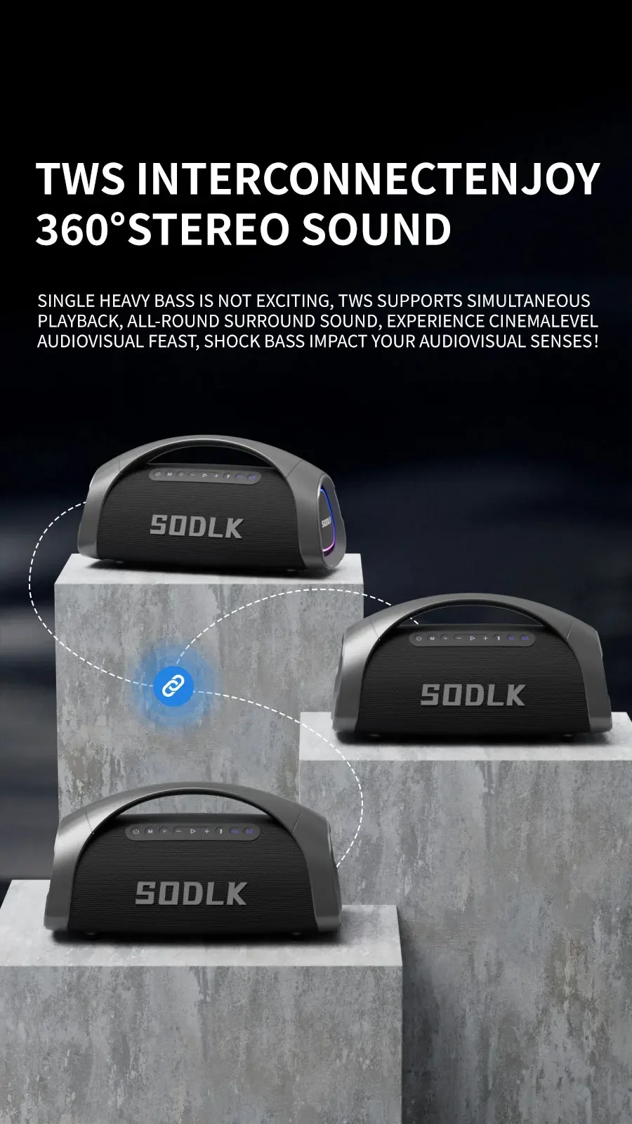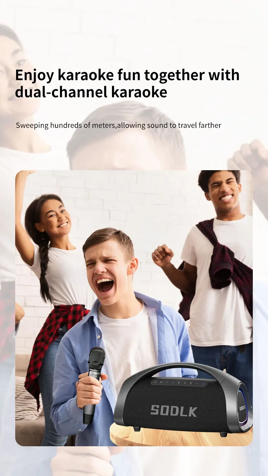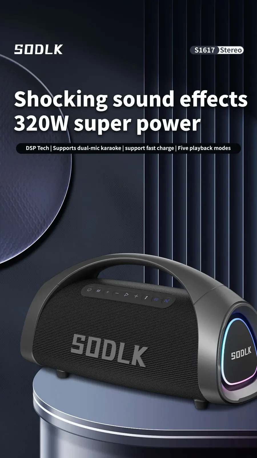 Altavoz Bluetooth inalámbrico portátil de alta potencia de 320W IPX6 resistente al agua graves pesados con micrófonos duales para Karaoke