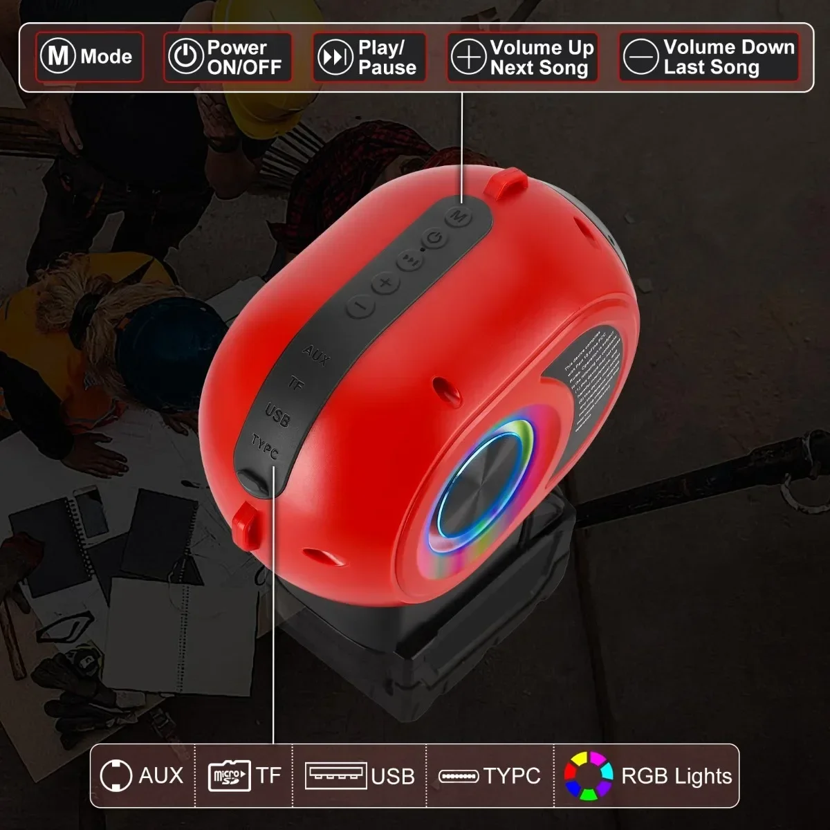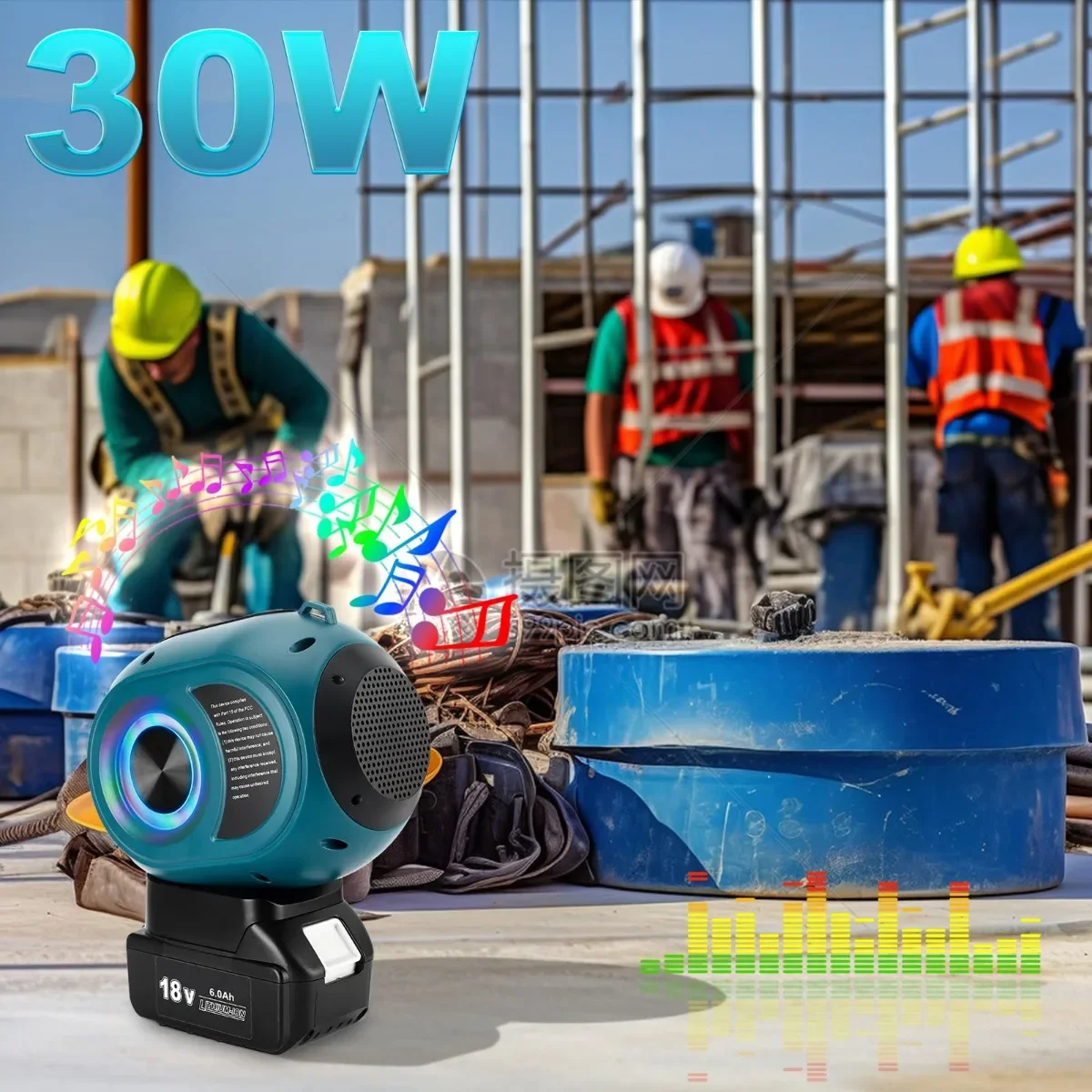 Altavoz inalámbrico Bluetooth, sistema de sonido portátil de alta definición para fiesta de festivales, para Makita/Bosch/DW/Milwaukee, batería de 18/20V 【Adecuado para cualquier escena】 Este altavoz Bluetooth portátil es ideal para usar en sitios de construcción, escenas industriales y actividades al aire libre.El diseño robusto del producto puede soportar cualquier entorno hostil; asegurando un funcionamiento estable del producto.