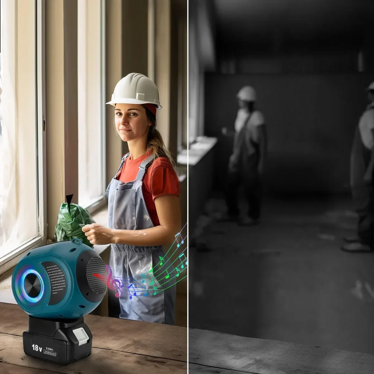 【Tiempo de reproducción ilimitado】 - El altavoz bluetooth inalámbrico portátil es perfectamente compatible con baterías Makita de 18 V BL1820B BL1830B BL1840B BL1850B BL1860B, etc. Tiempo de reproducción ilimitado si tiene varias baterías de respaldo.(Baterías no incluidas)