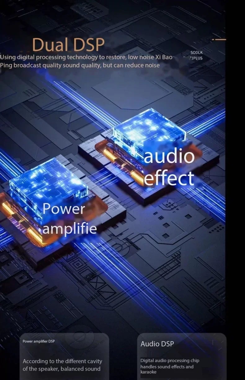 7: Adoptando DSP duales (uno es un amplificador DSP (salida de sonido equilibrada basada en diferentes cavidades del altavoz) y el otro es un DSP de audio (chip de procesamiento de audio digital) para procesar efectos de sonido y karaoke)