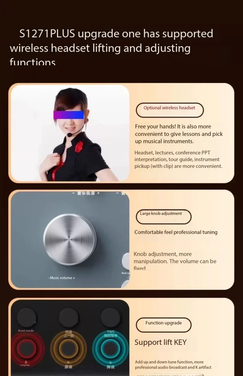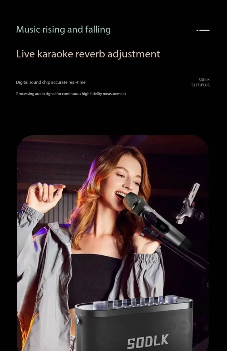 6: Función de karaoke de doble canal, admite operación simultánea de 2 micrófonos, control remoto con detección de 360 grados