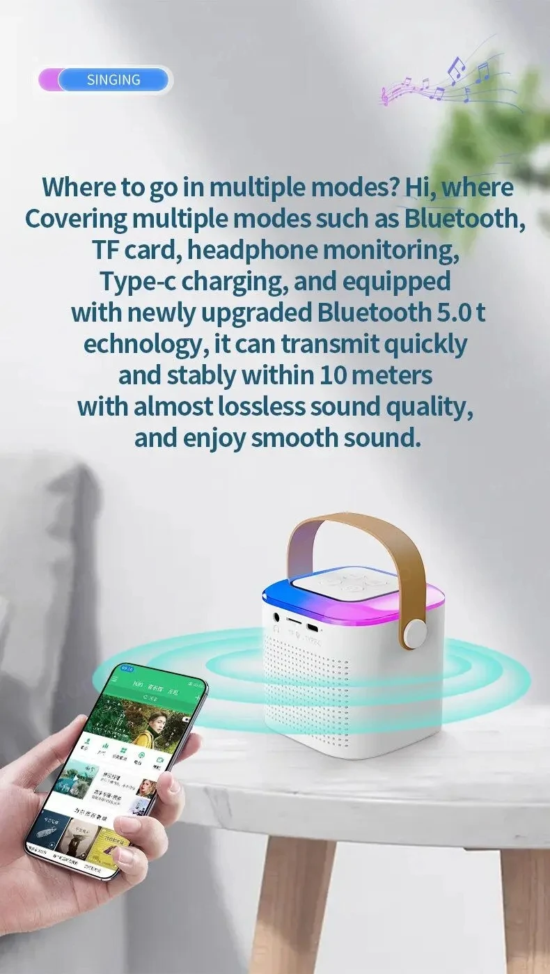 3.Múltiples modos: esta máquina admite varios modos, como Bluetooth, tarjeta TF, monitoreo de auriculares y carga tipo C.Además, cuenta con la última tecnología Bluetooth 5.3, que proporciona una transmisión rápida y estable de hasta 10 metros con una calidad de audio casi sin pérdidas.
