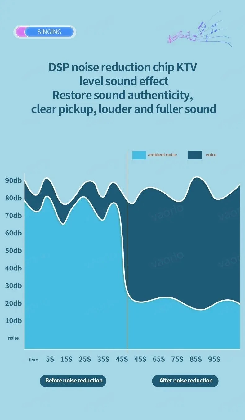 • Modo de graves adicionales: el modo de graves adicionales ofrece un sonido rico e intenso, lo que hace que su interpretación de karaoke sea más emocionante y agradable.