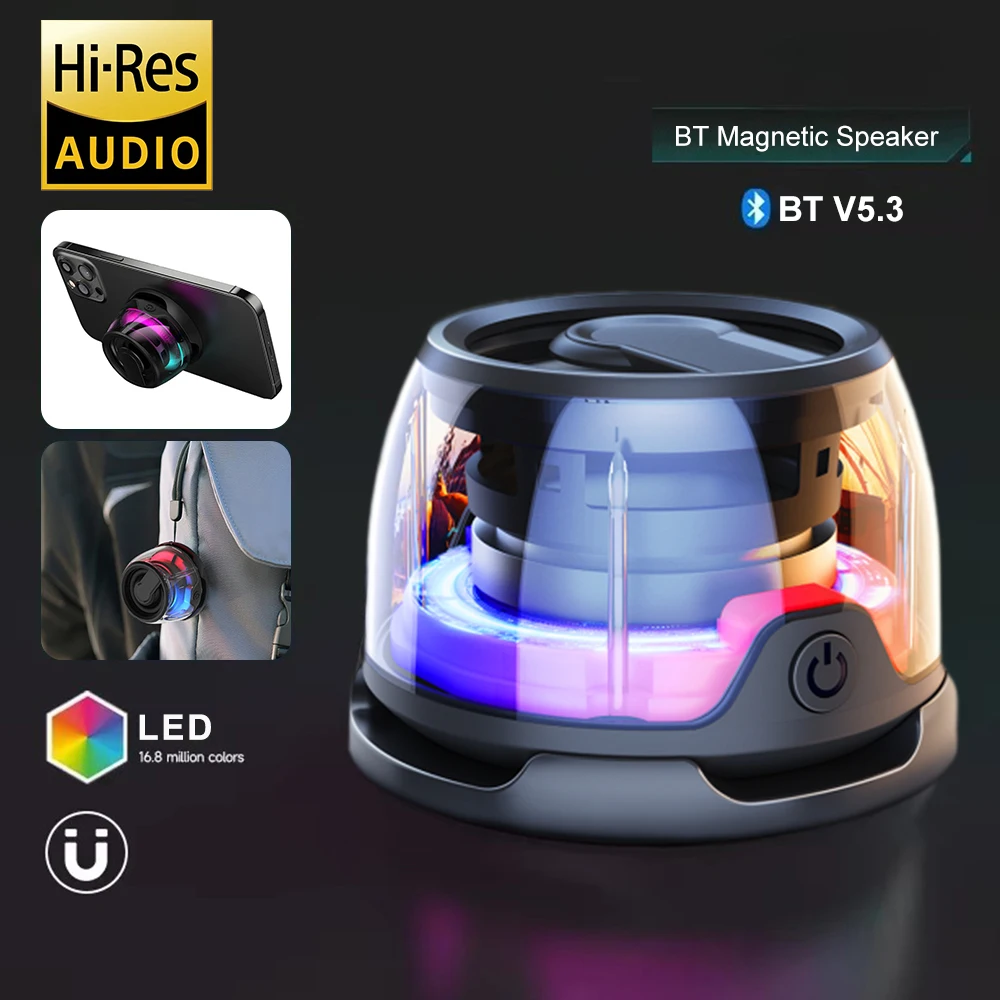 Altavoz Bluetooth portátil magnético Mini caja de sonido barra de sonido estéreo HiFi altavoz inalámbrico con luz LED Color soporte para teléfono
