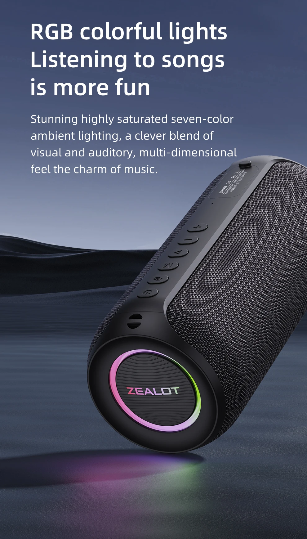 Comprar Altavoz Bluetooth portátil ZEALOT-S32MAX, resistente al agua IPX5, caja de sonido potente, graves estéreo para exteriores, altavoz de seguimiento musical, 20W