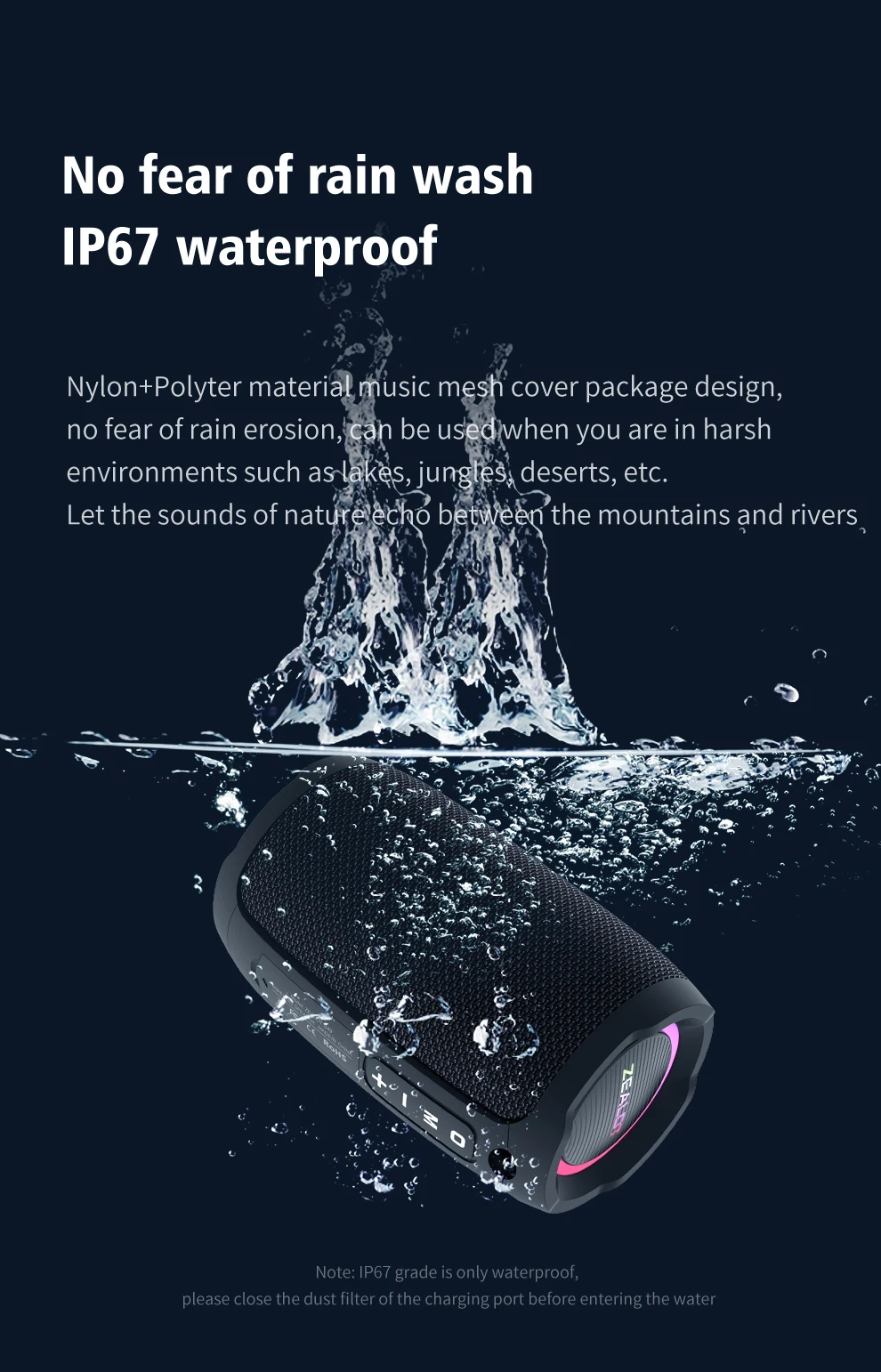 • Impermeable IPX7 :Este altavoz es resistente al agua, lo que lo hace perfecto para actividades al aire libre o derrames accidentales.