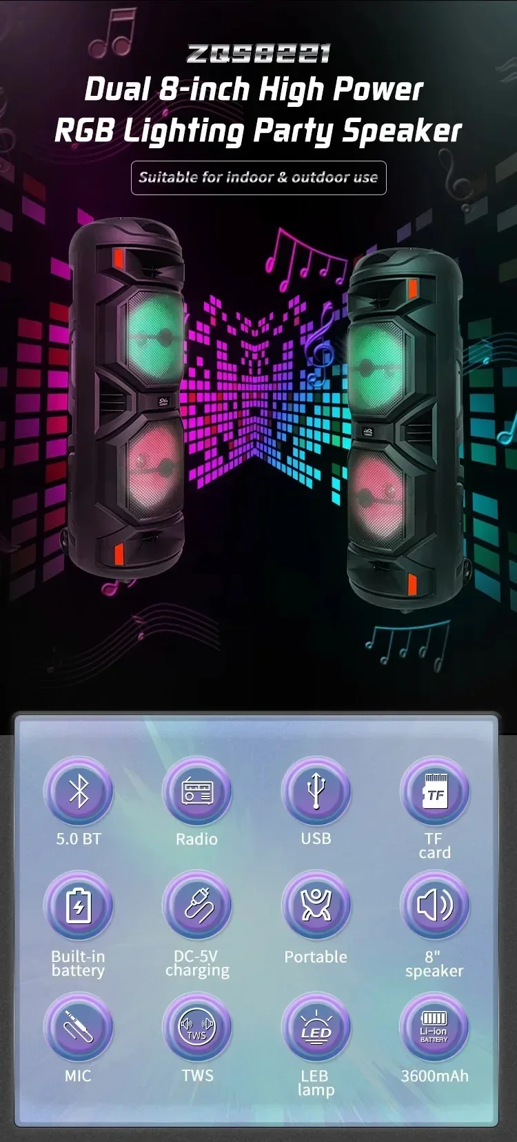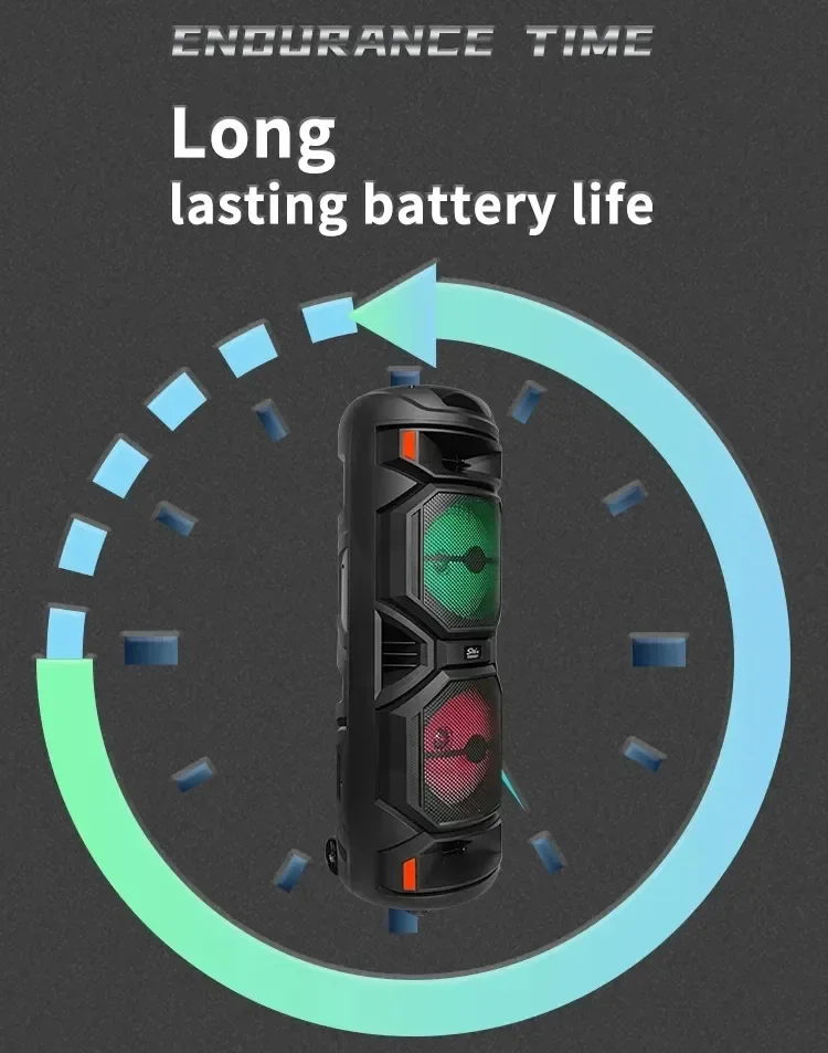 Altavoz Bluetooth súper grande para exteriores de potencia máxima de 1200W, Subwoofer de doble bocina de 8 pulgadas, columna inalámbrica portátil, sonido de graves con micrófono