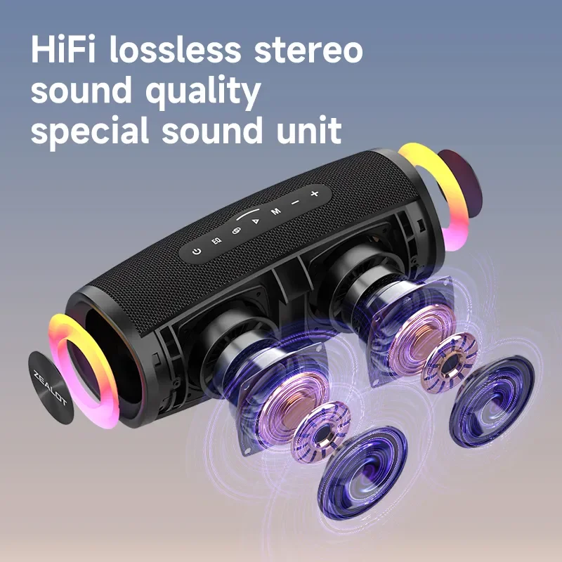 • 40W Potencia de salida:Experimente un sonido de alta calidad con la potencia de salida de 40W del altavoz Bluetooth ZEALOT S56.