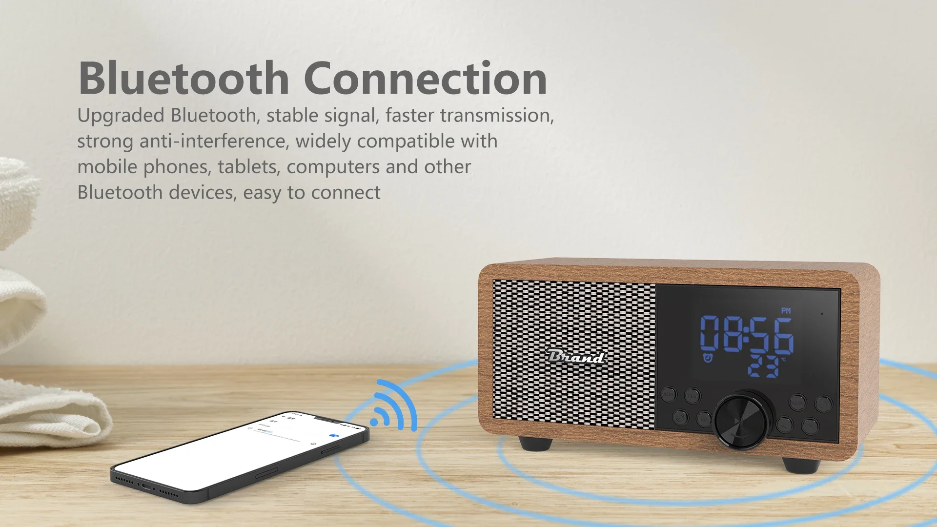diodo emisor de luz Radio FM Bluetooth tarjeta TF inalámbrica Salida USB Entrada de auriculares Reloj despertador Pantalla de temperatura Parámetro de especificación
